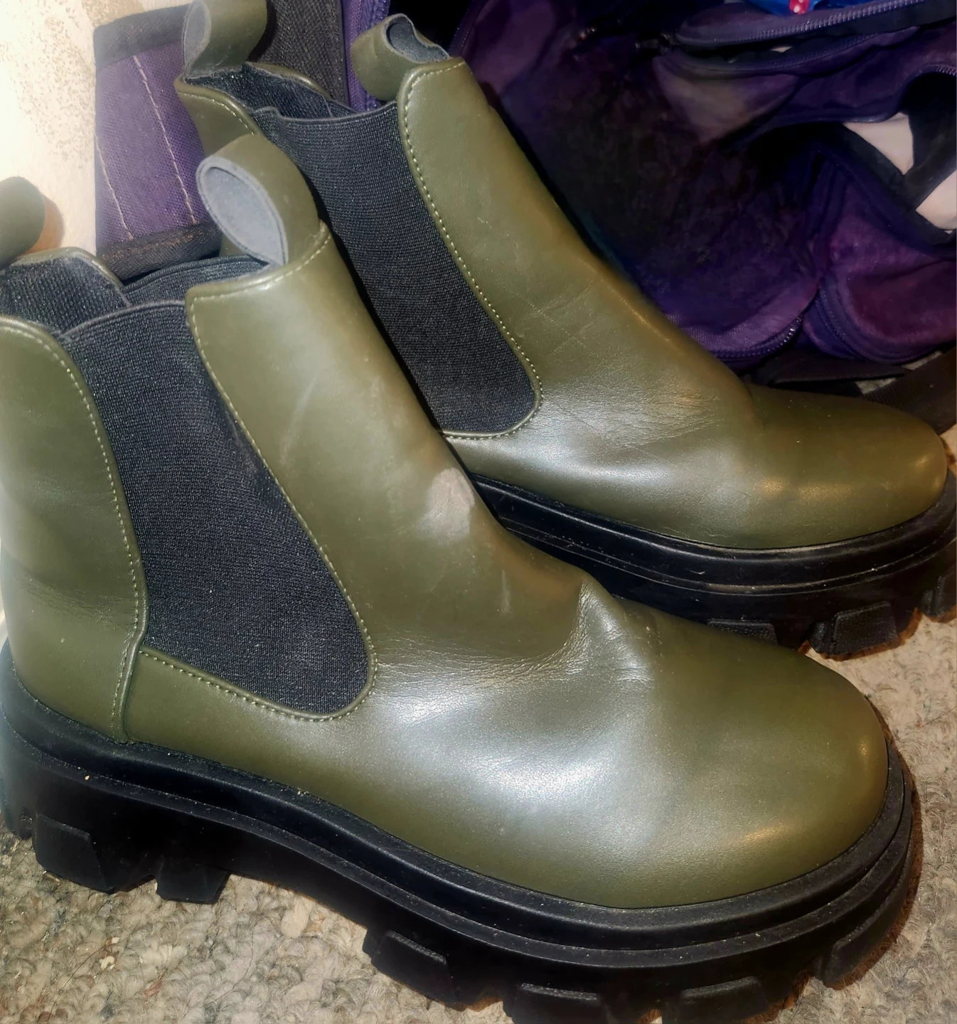 Selling a pair of green Chelsea boots in size 39, or 9. They have a chunky sole and are in good condition! Perfect for adding a bit of edge to your outfits. Pick up only unless within walking distance meeting is possible.