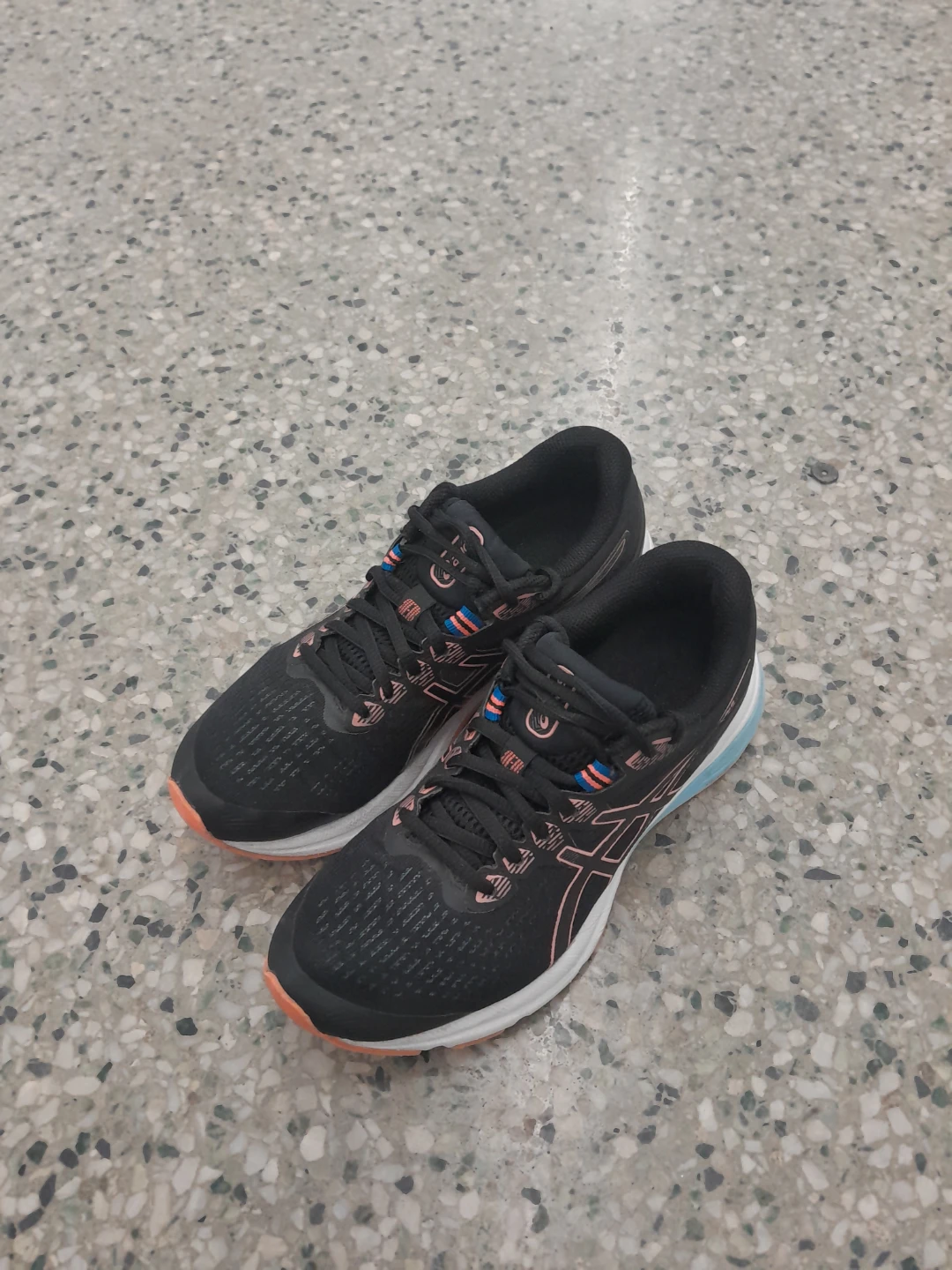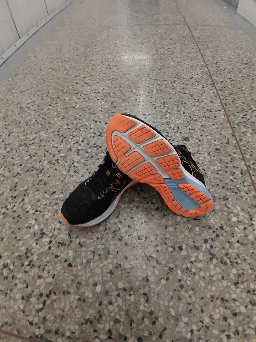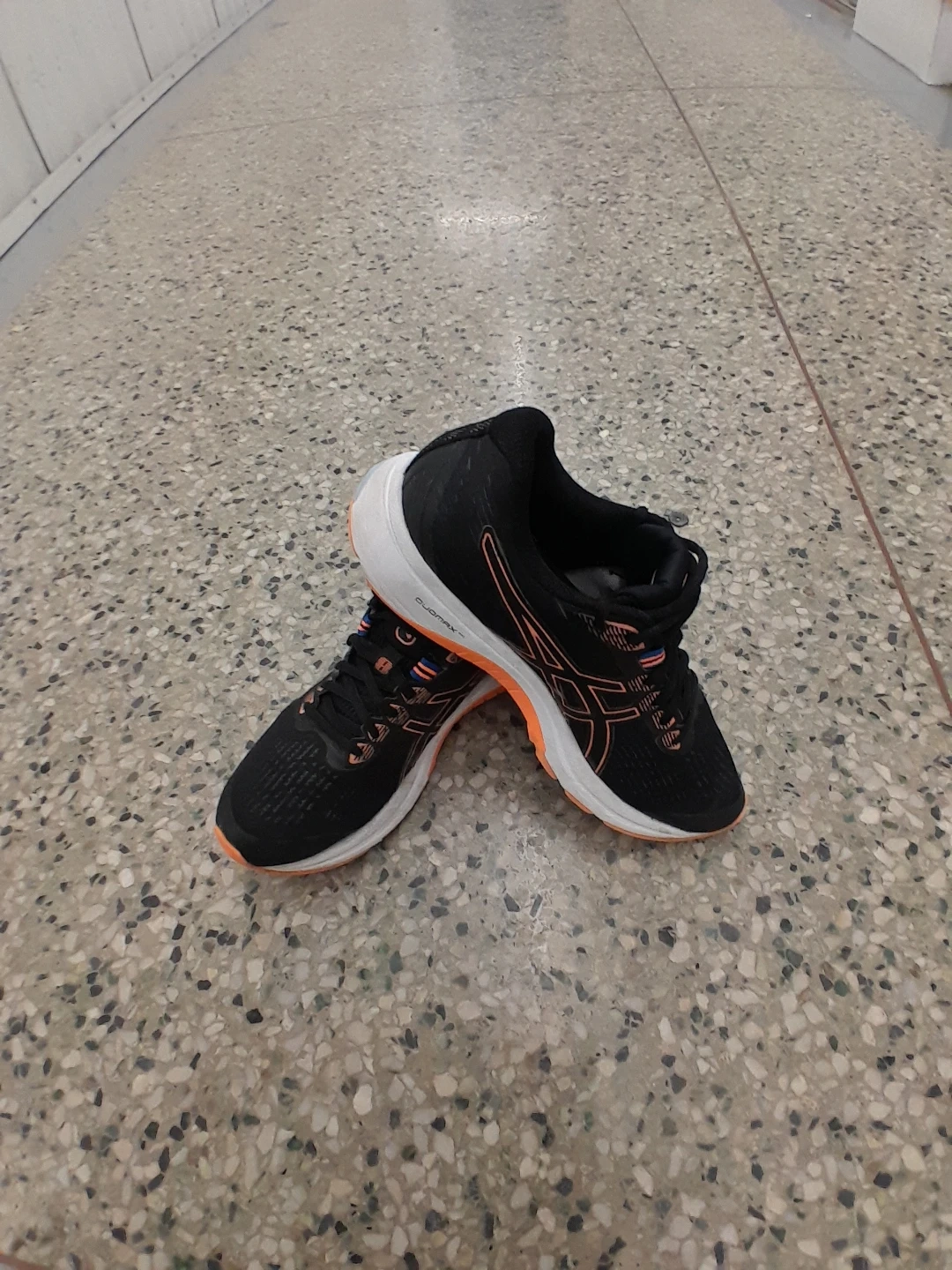 Asics Gel-Excite 9 running shoes for sale! They're in great shape and ready for your next run. The shoes are black with orange accents on the sole and Asics logo. Perfect for jogging or everyday wear women's size 7
