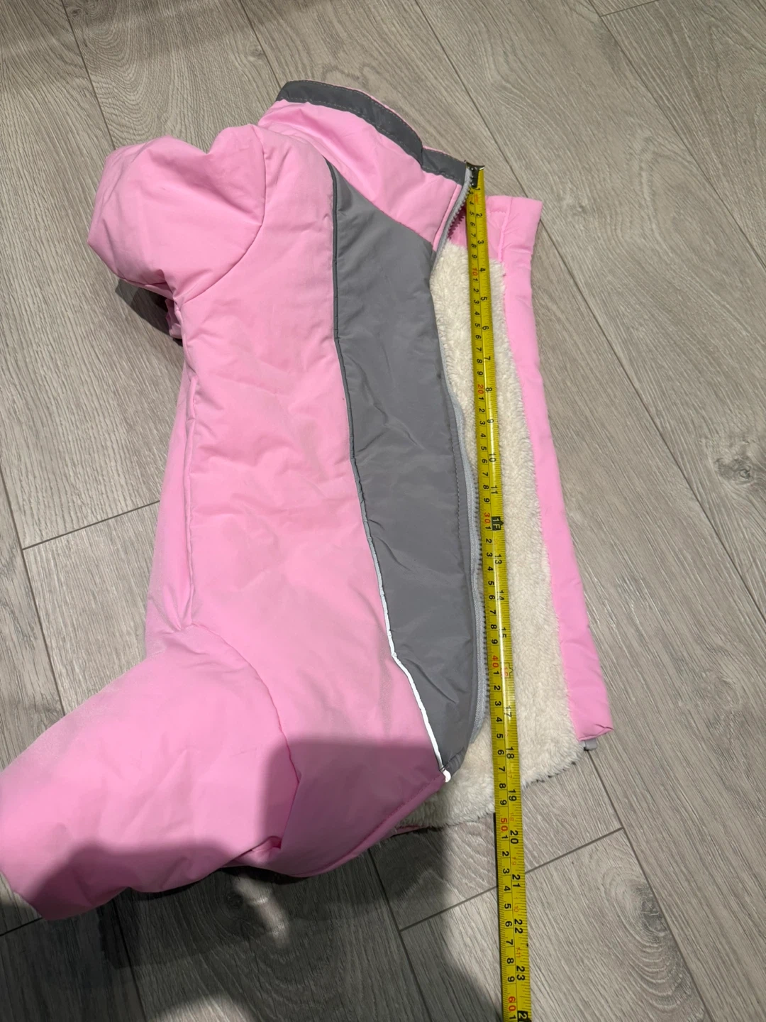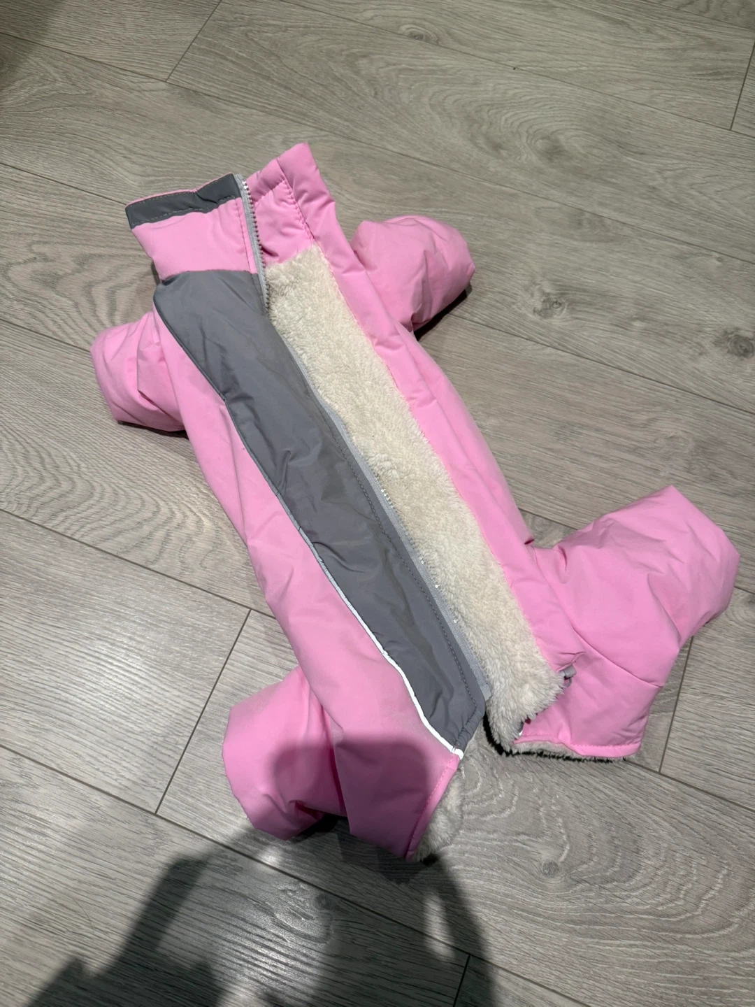 A cute pink baby snowsuit to keep your little one warm this winter! It's in great condition and ready for some snowy adventures