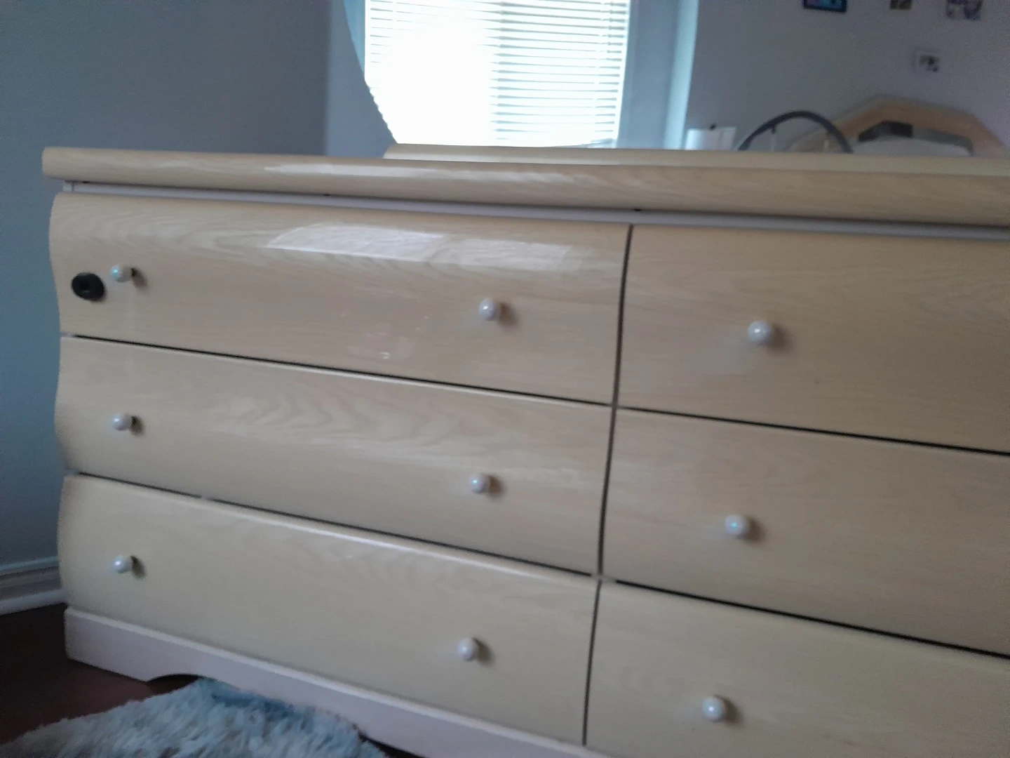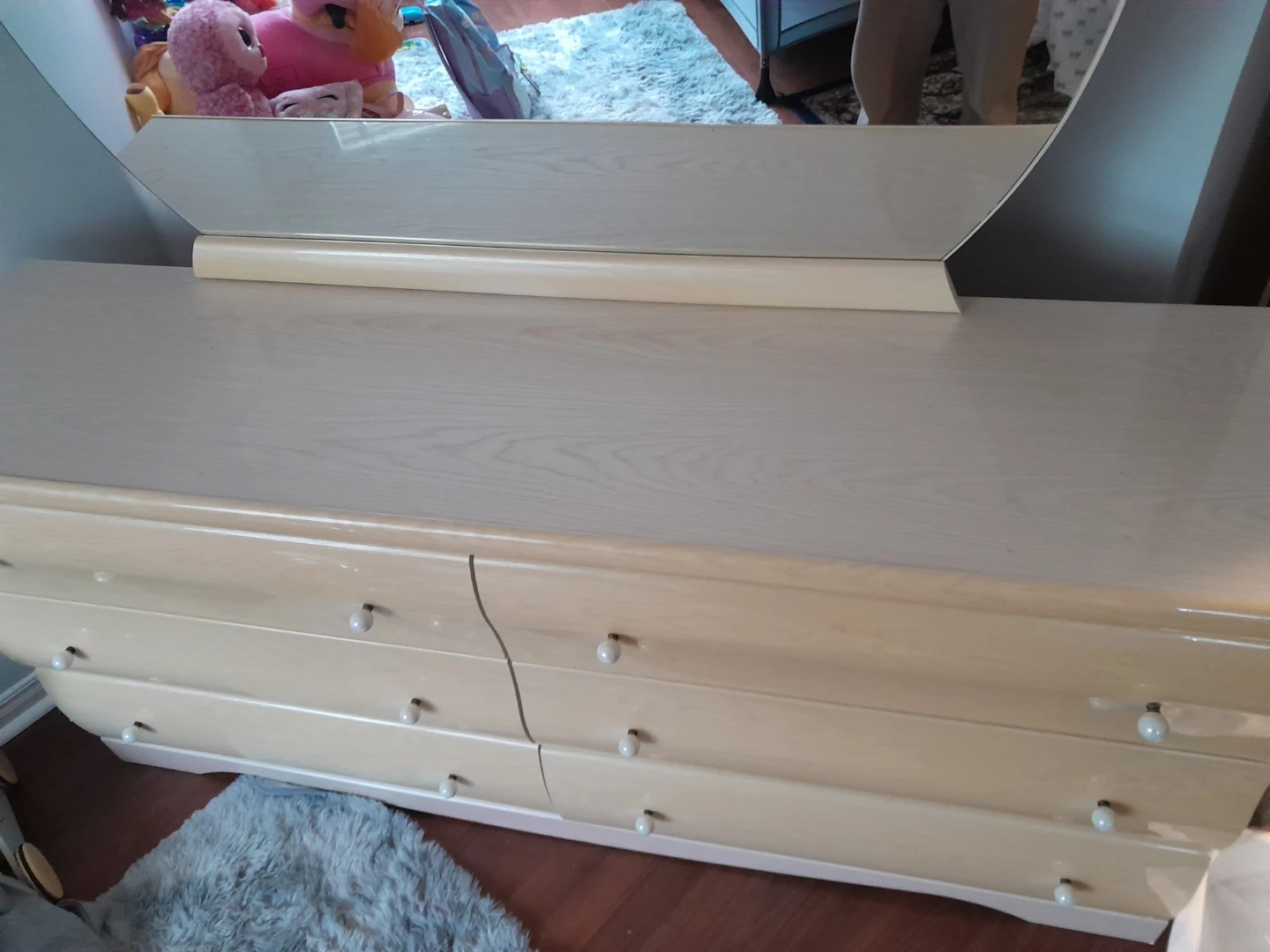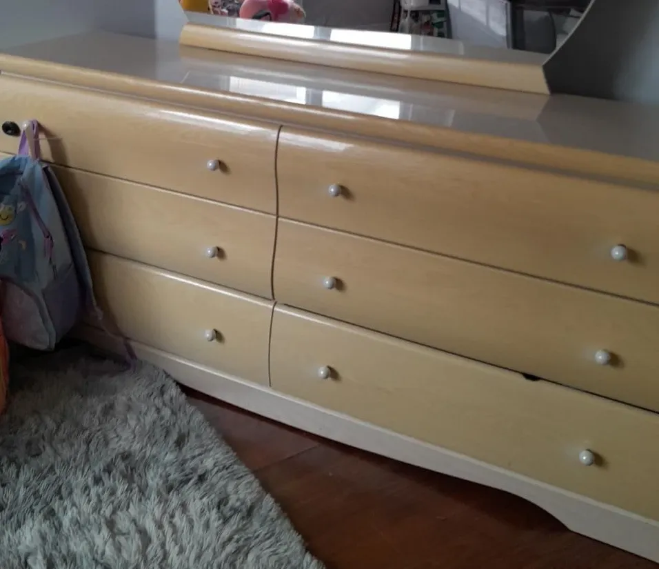 Selling a dresser with a mirror. It has six drawers and is in good condition. Perfect for adding storage to any bedroom!