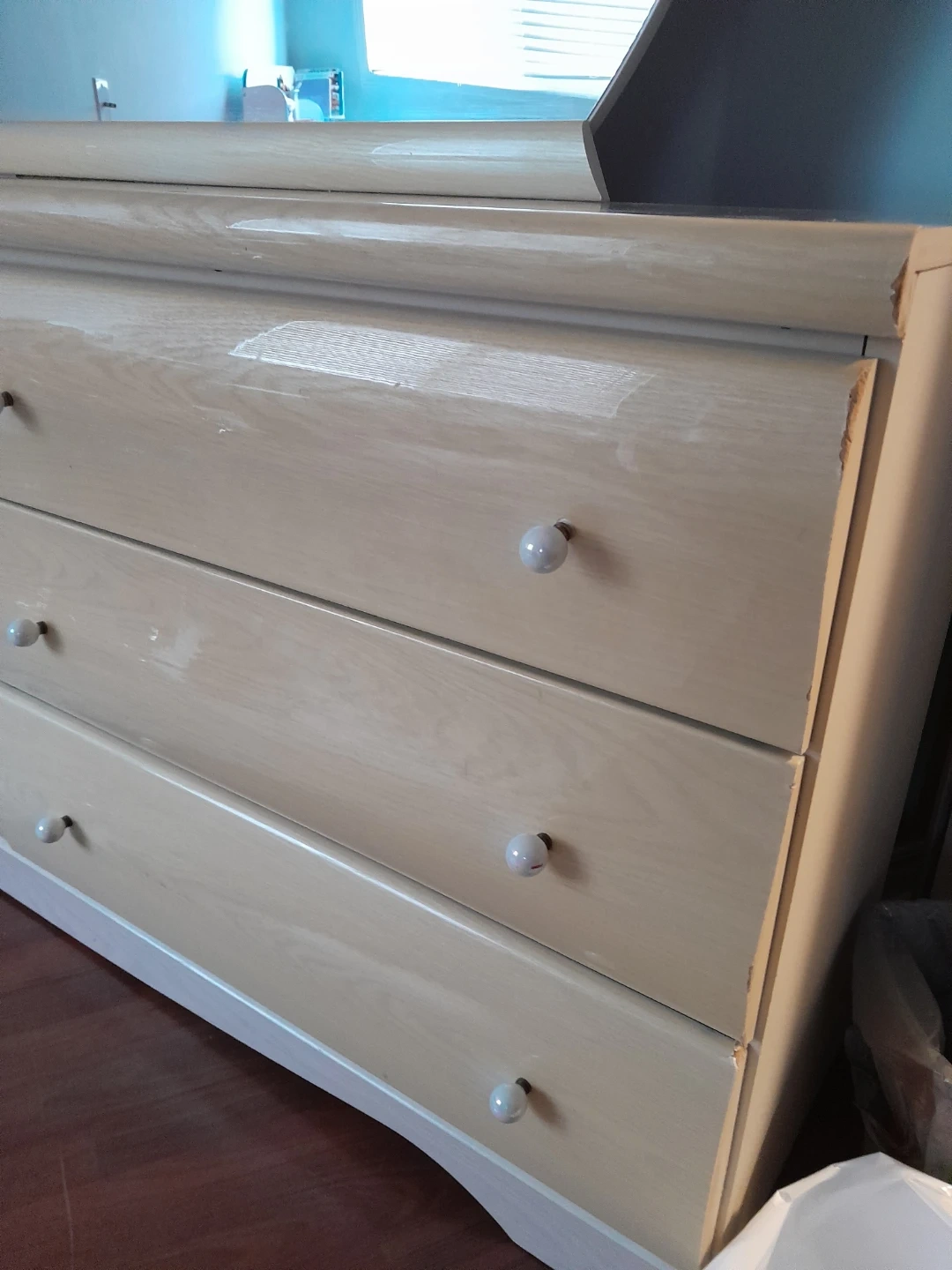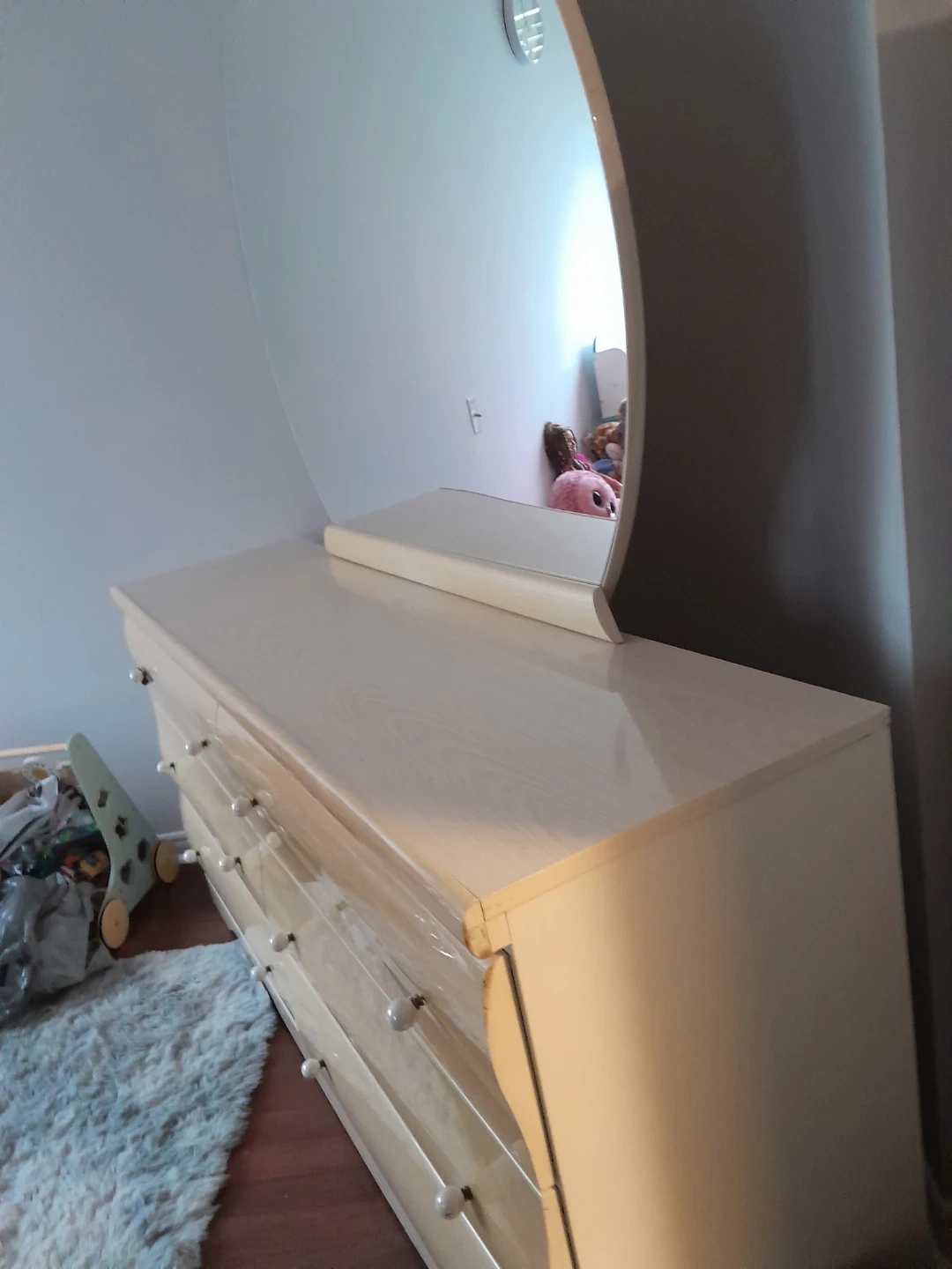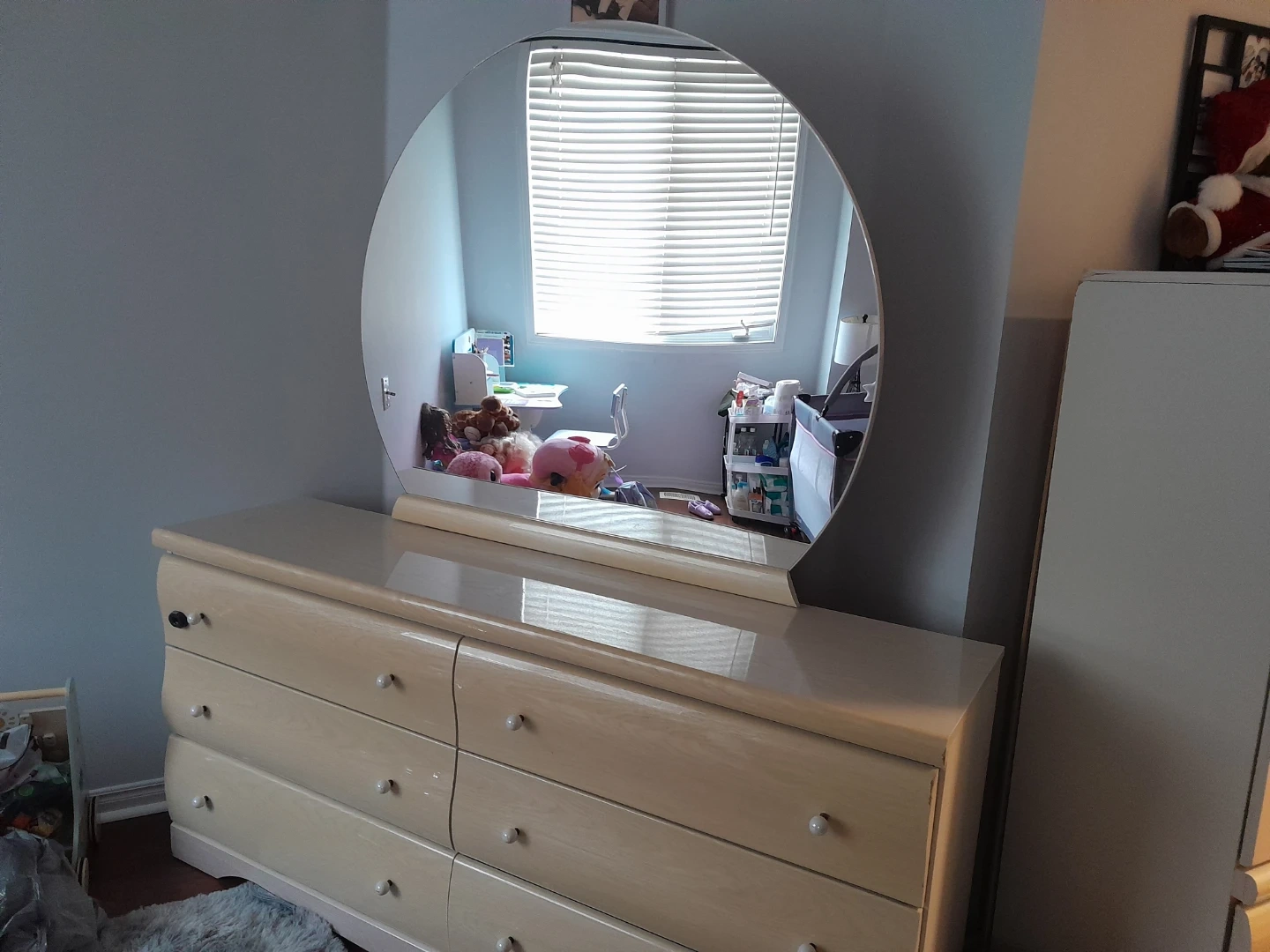 Selling a dresser with a mirror. It has six drawers and is in good condition. Perfect for adding storage to any bedroom!