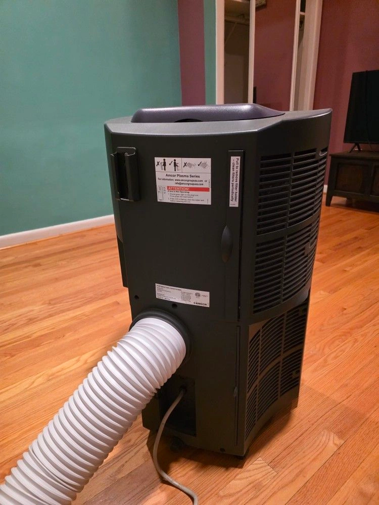 Portable air conditioner in good working condition. Includes the exhaust hose as shown in the photo. Cools a room quickly and is easy to move thanks to its built-in wheels. Ideal for bedrooms, living rooms, or small apartments. Brand: Amcor (Plasma Series) Condition: Used but fully functional. Pickup only. Moving... must Sale! Color: Black Brand: Brand: Amcor (Plasma Series)