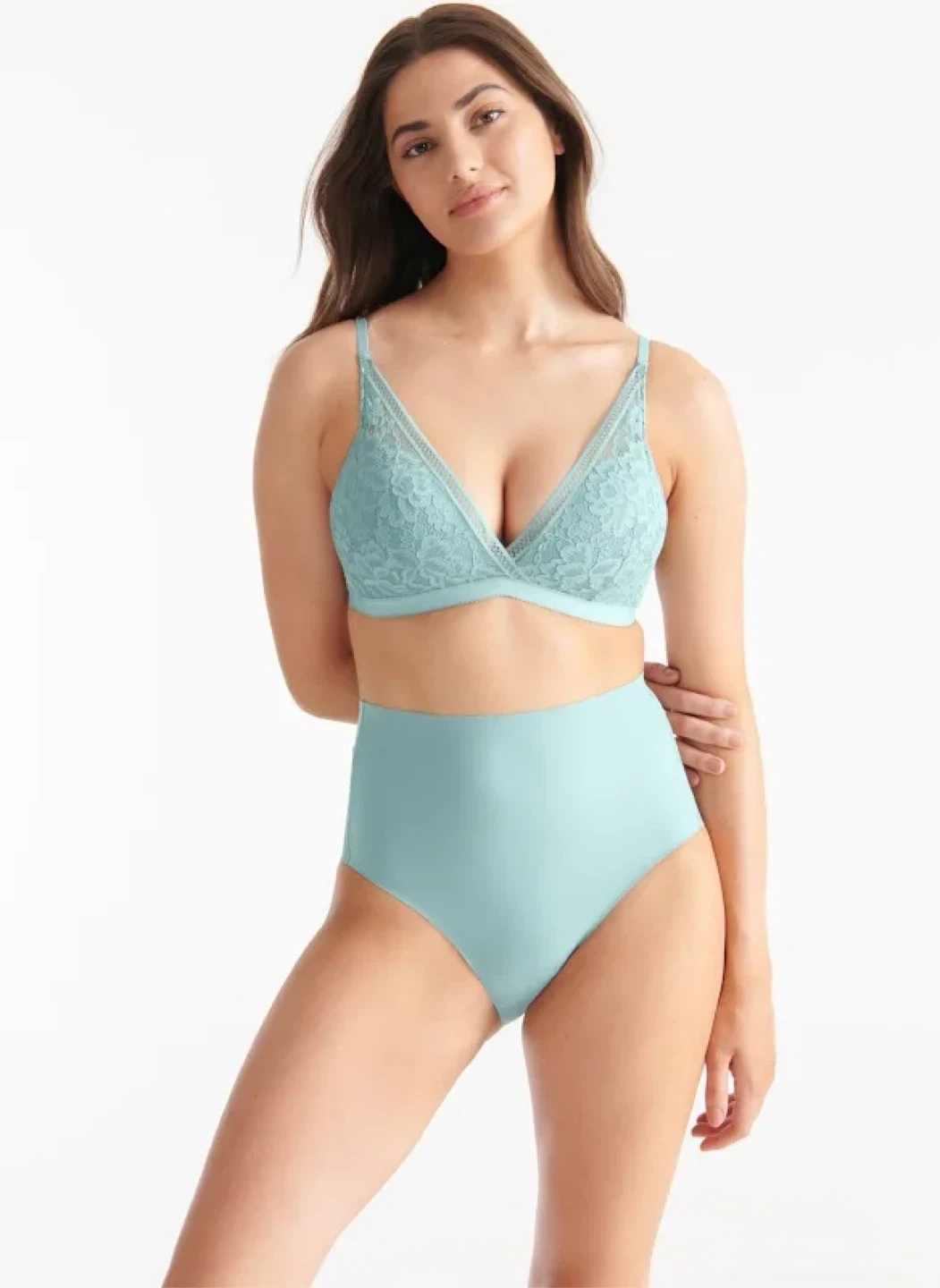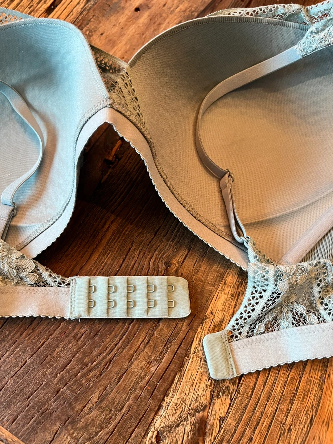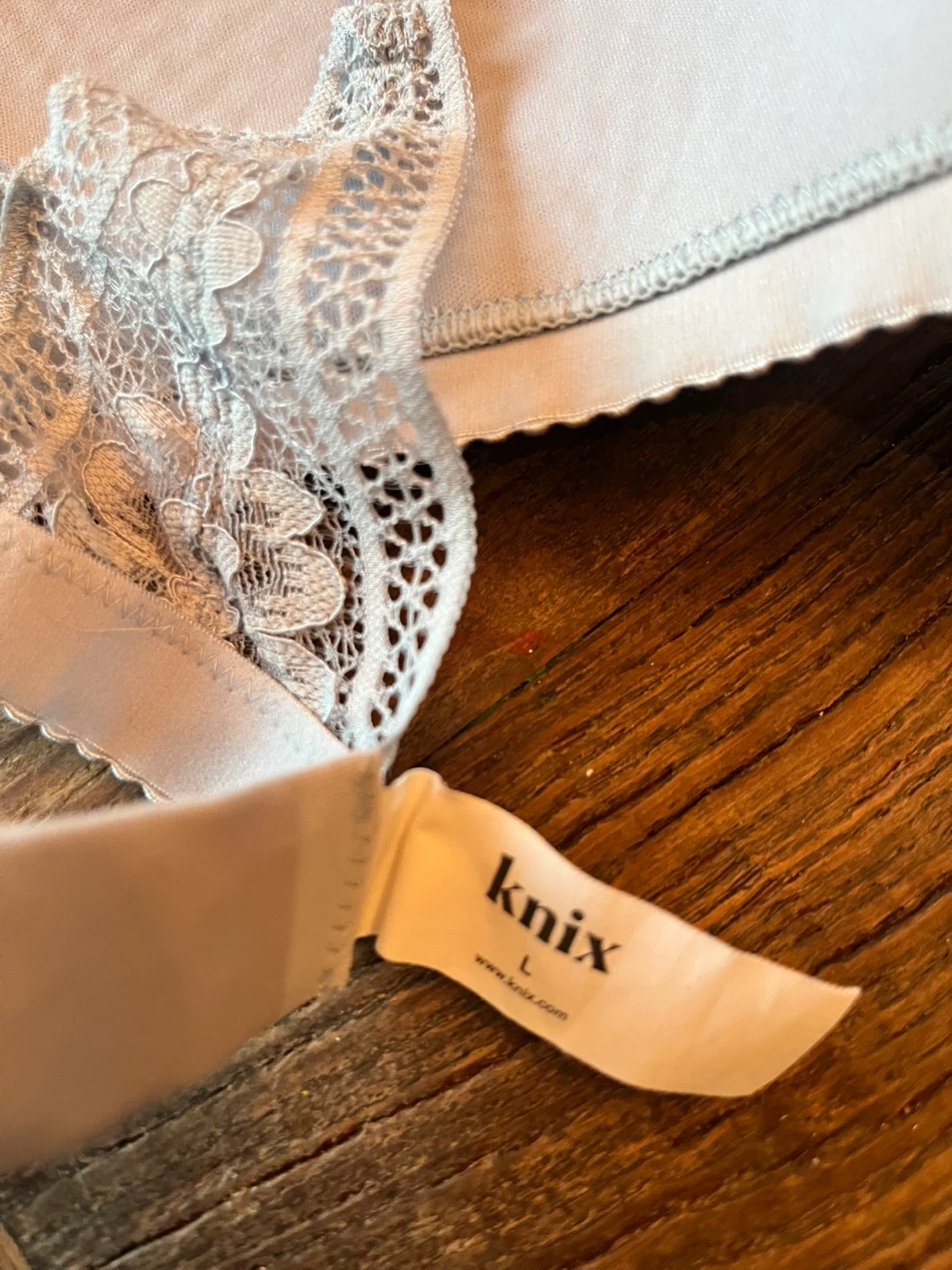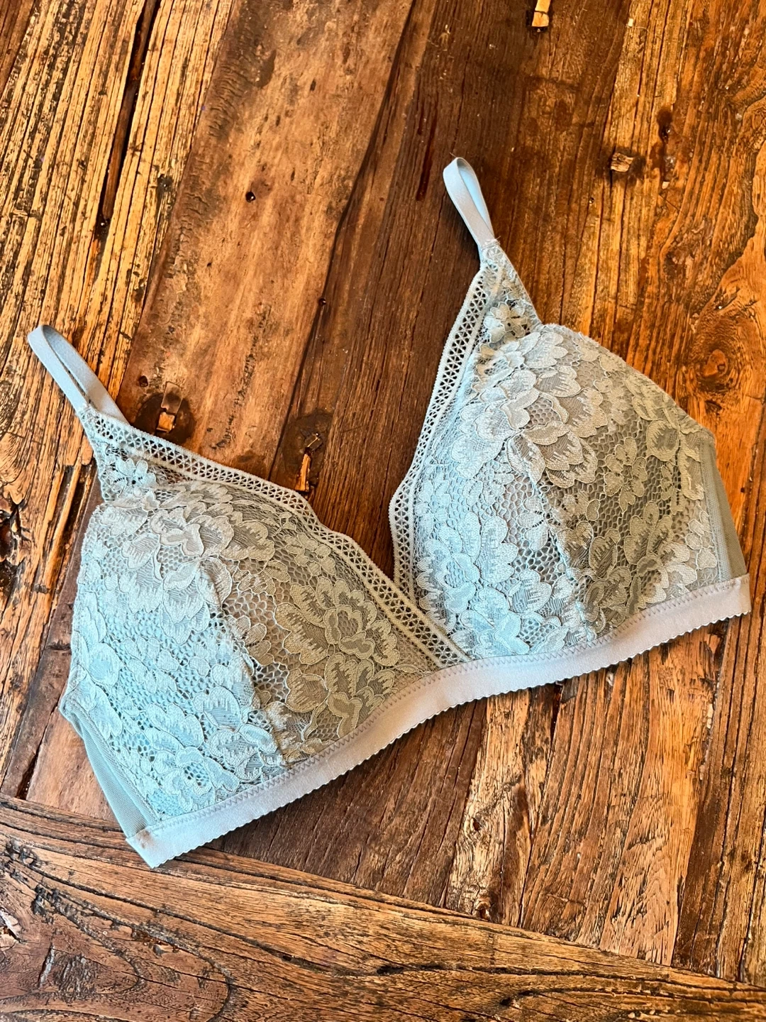 2 Knix Deep V Lace bras in sage and sky blue. These are wireless and super comfortable to wear, yet still supportive and shaping. Both Size L which should fit 36B-36C. In new condition!