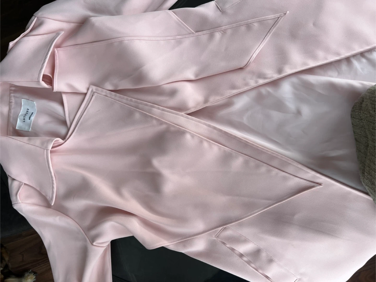 Selling a lovely pastel pink trench coat from. The colour is closer to the first picture. It's in great condition and ready for a new owner! Perfect for spring or fall weather. Bought in Korea