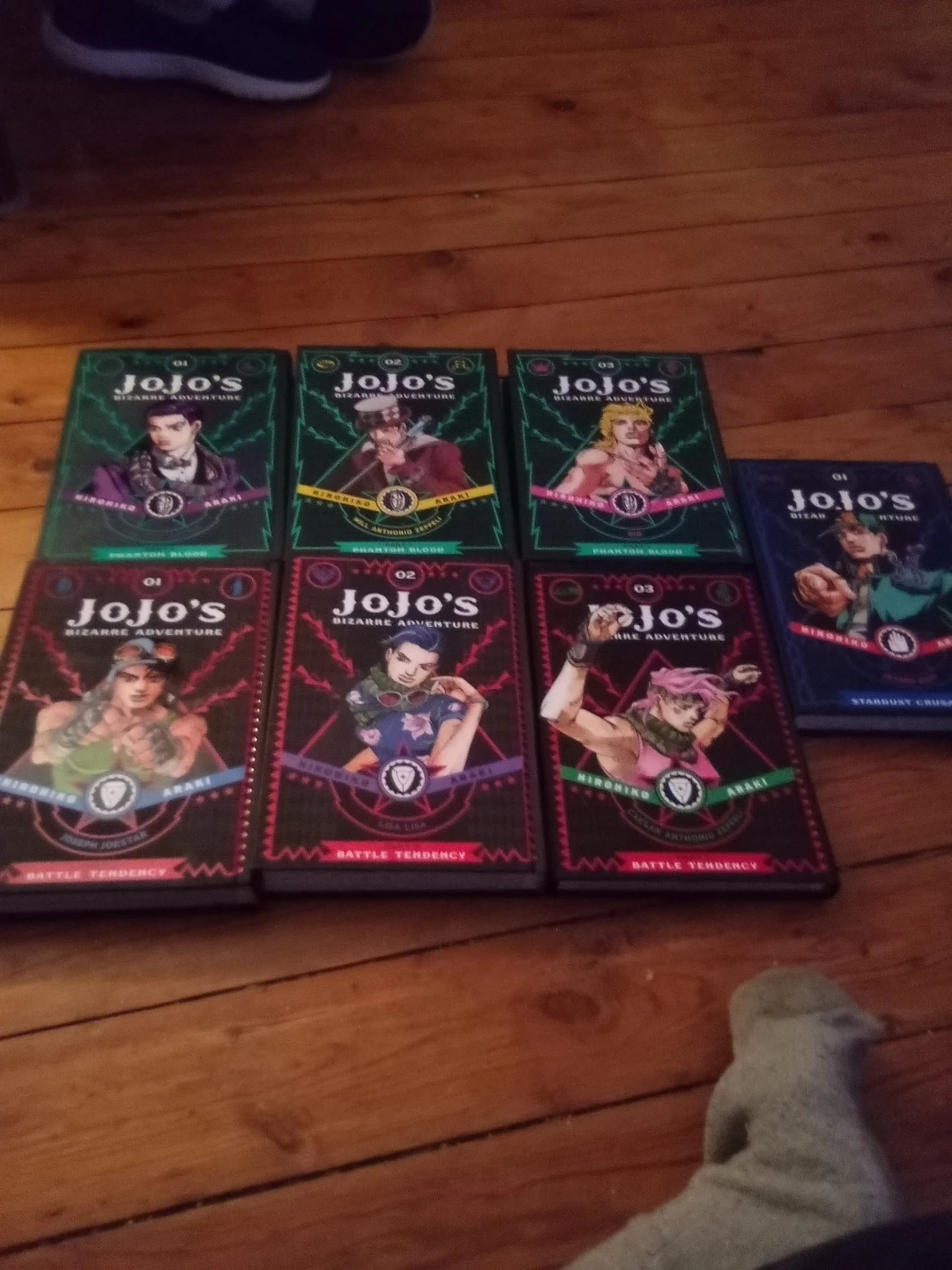 Selling JoJo's Bizarre Adventure manga books! Includes Phantom Blood (volumes 1-3), Battle Tendency (volumes 1-3), and Stardust Crusaders (volume 1).