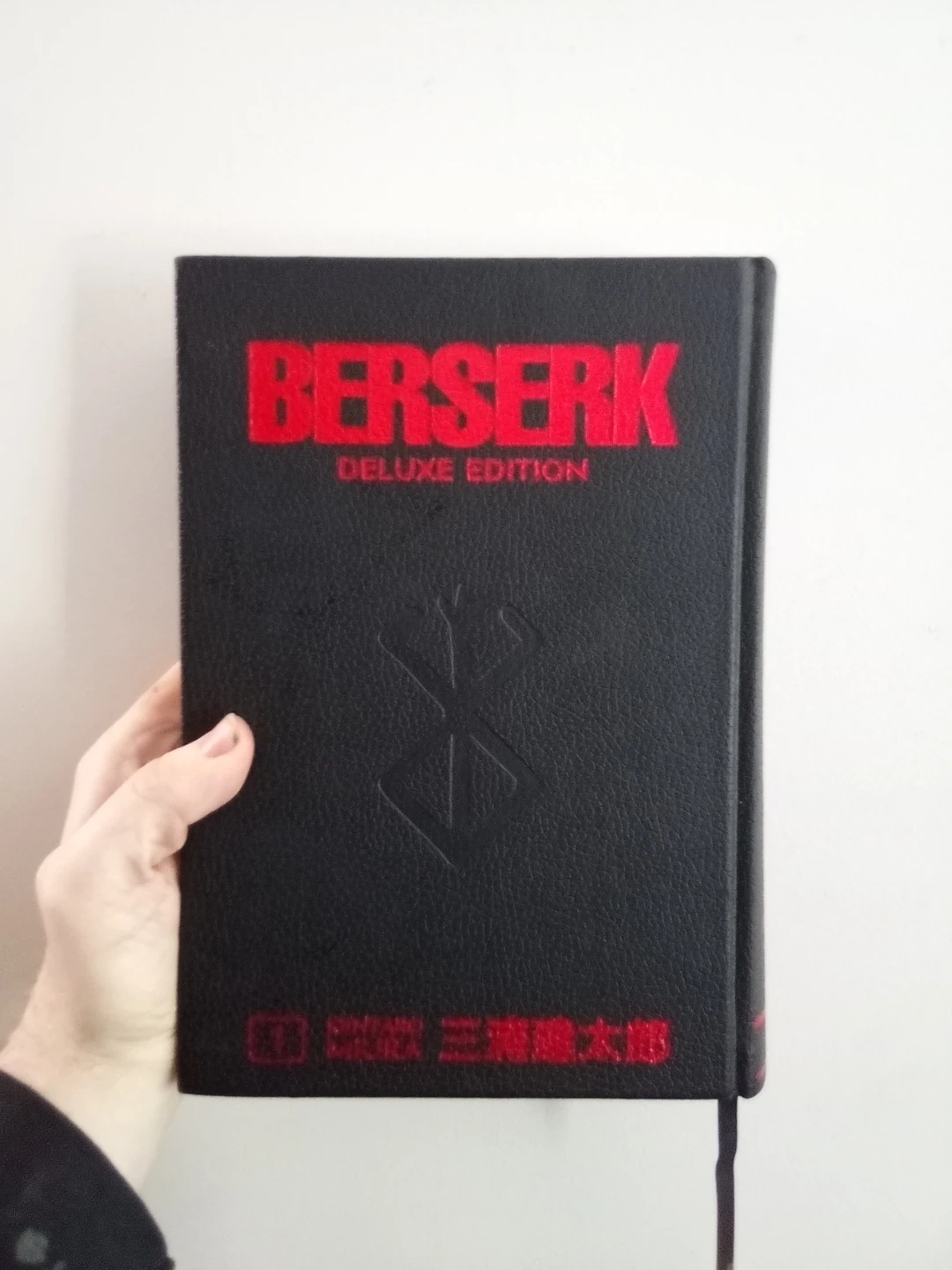 Selling a copy of Berserk Deluxe Edition. It is in great condition and ready for a new reader. This edition features larger pages and high-quality printing to showcase Kentaro Miura's stunning artwork. Perfect for any manga collector or fan of the series