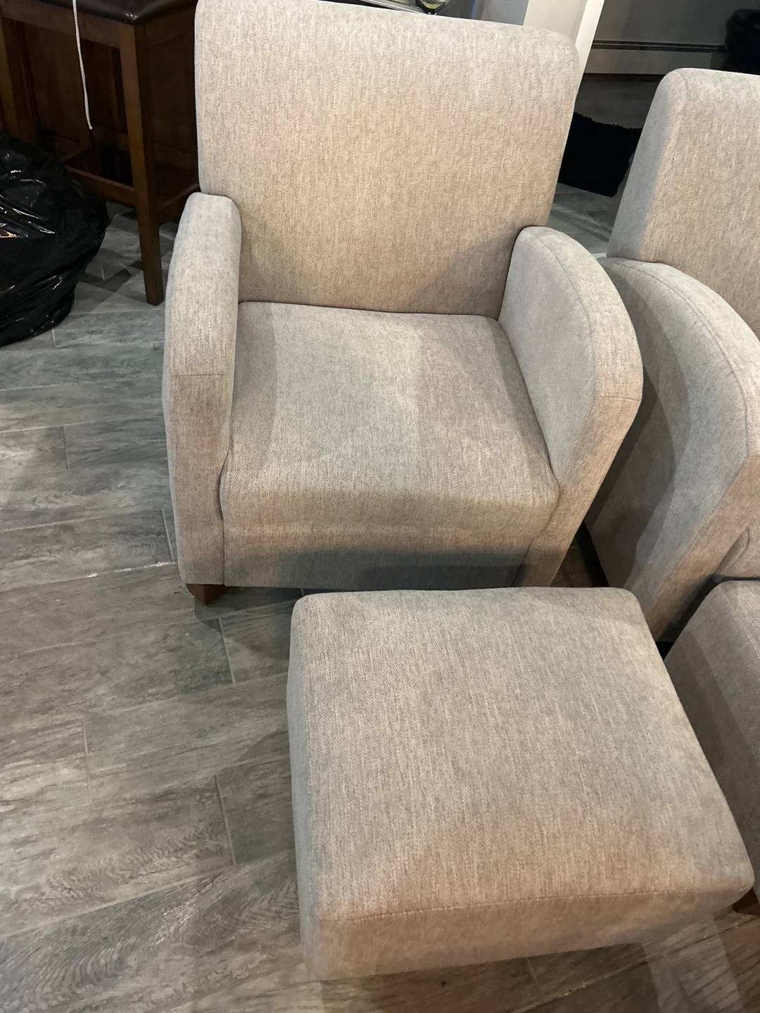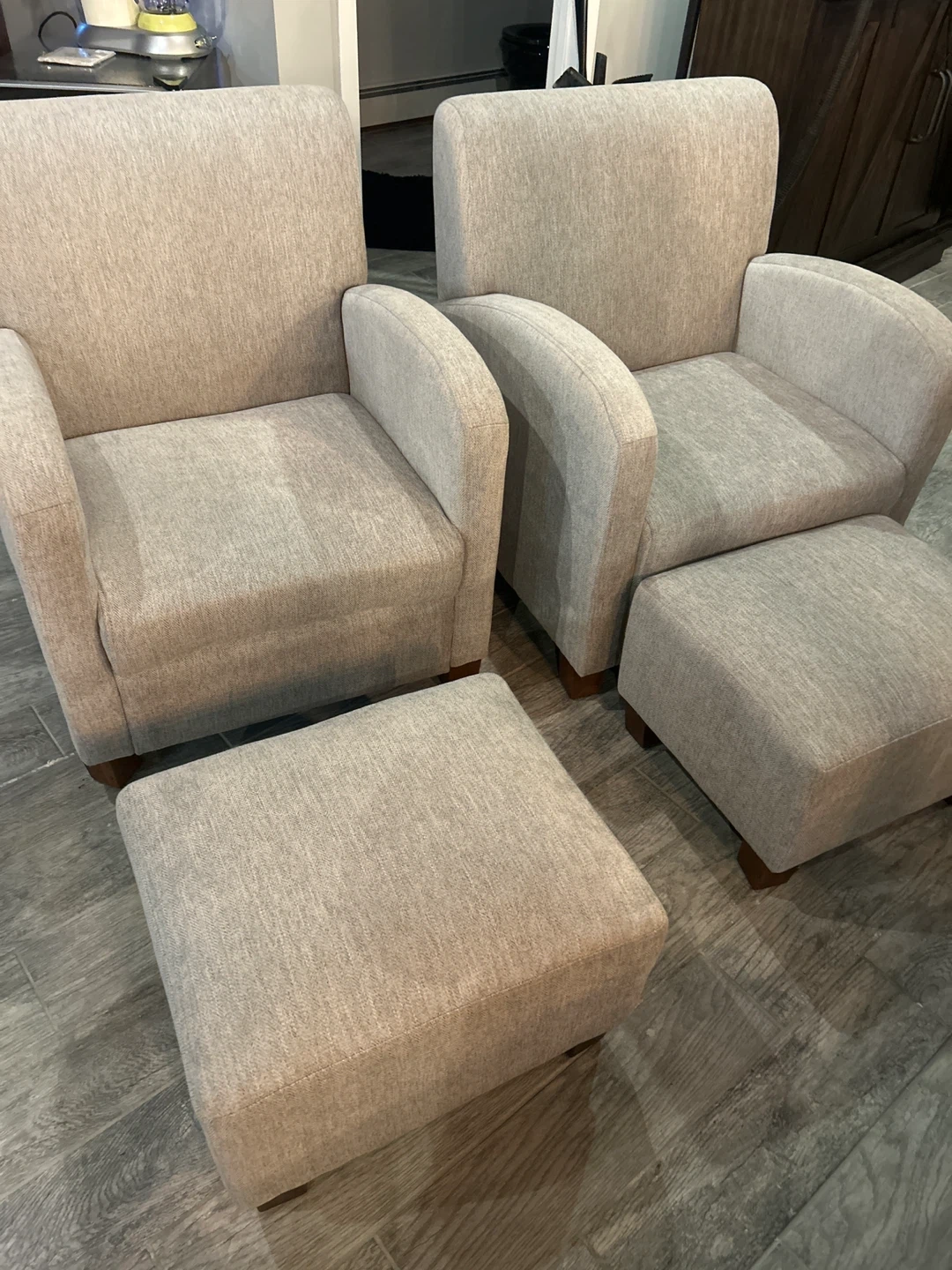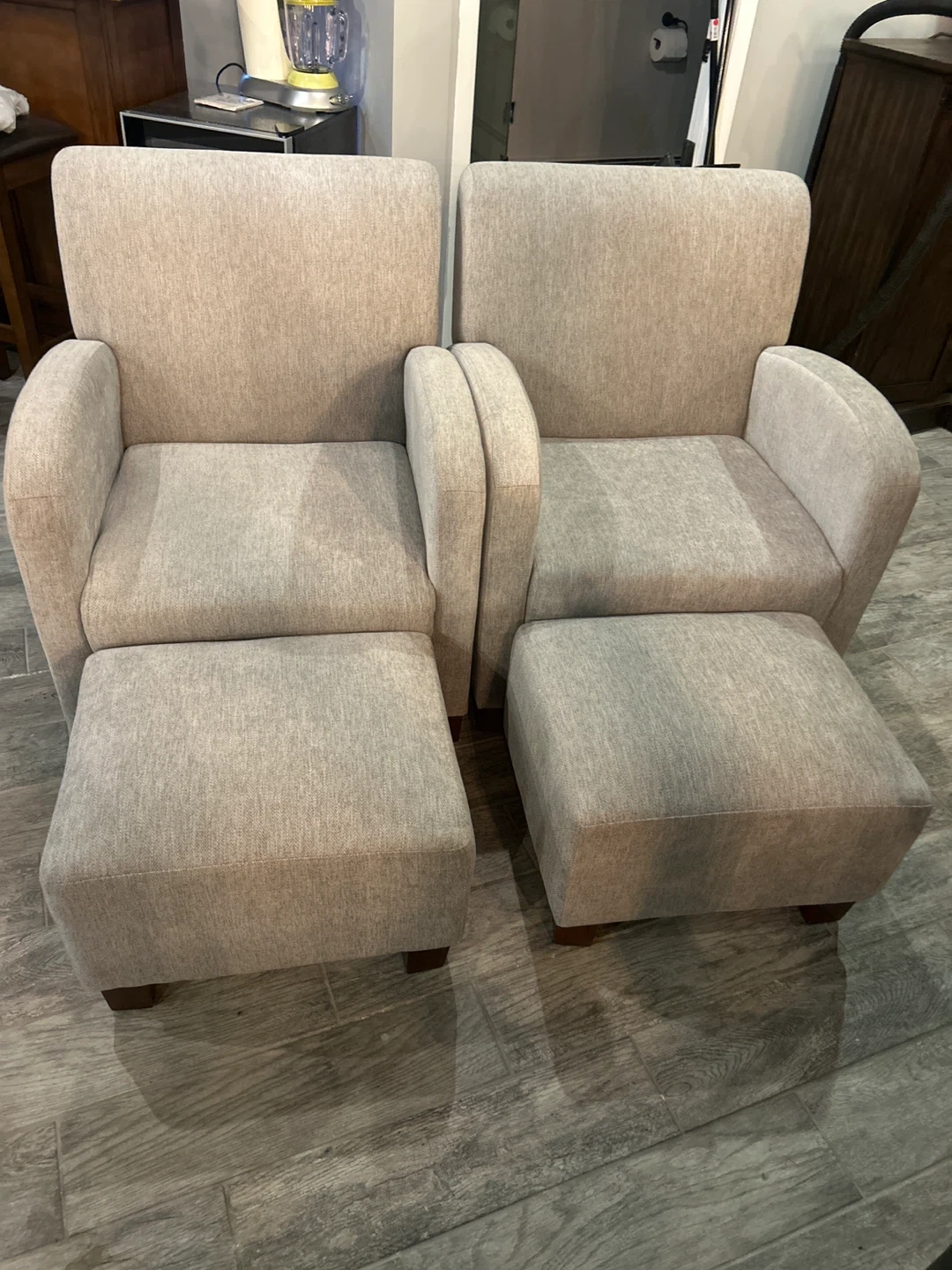 Two chairs and ottomans from Office Star Products are available! The chairs and ottomans are made with all new material consisting of foam pad and 95% polyester fiber batting.