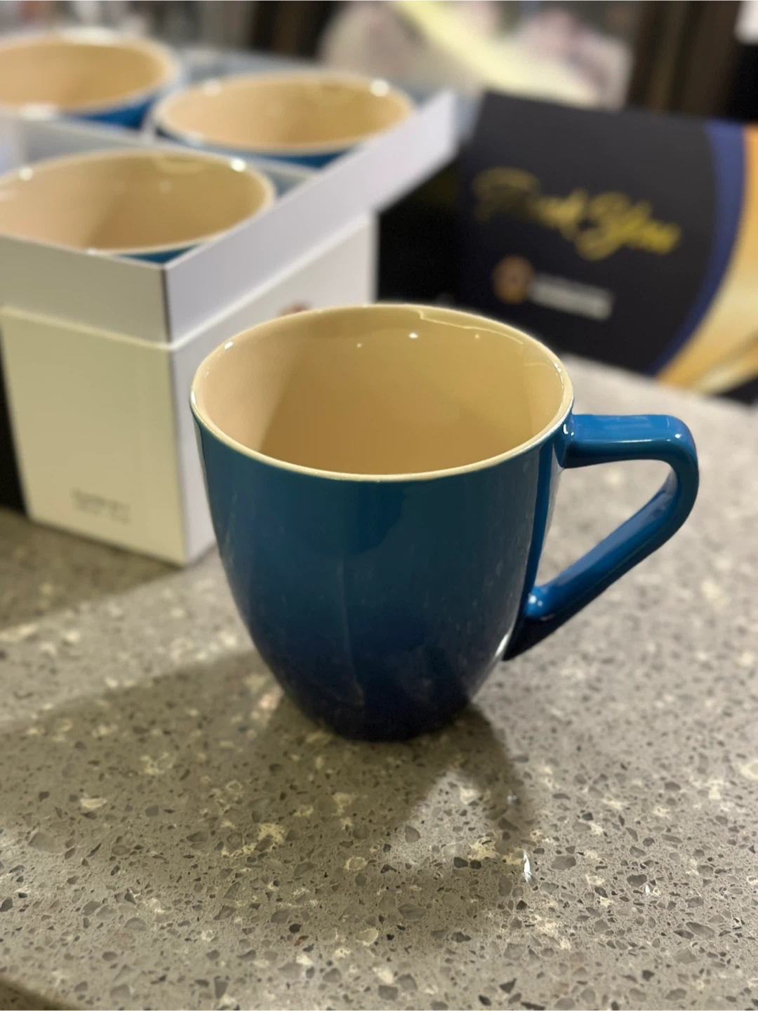 Selling a set of Le Creuset mugs in a lovely blue colour! They come in their original box, perfect for gifting or adding a touch of elegance to your kitchen. These mugs are in great condition and ready for a new home