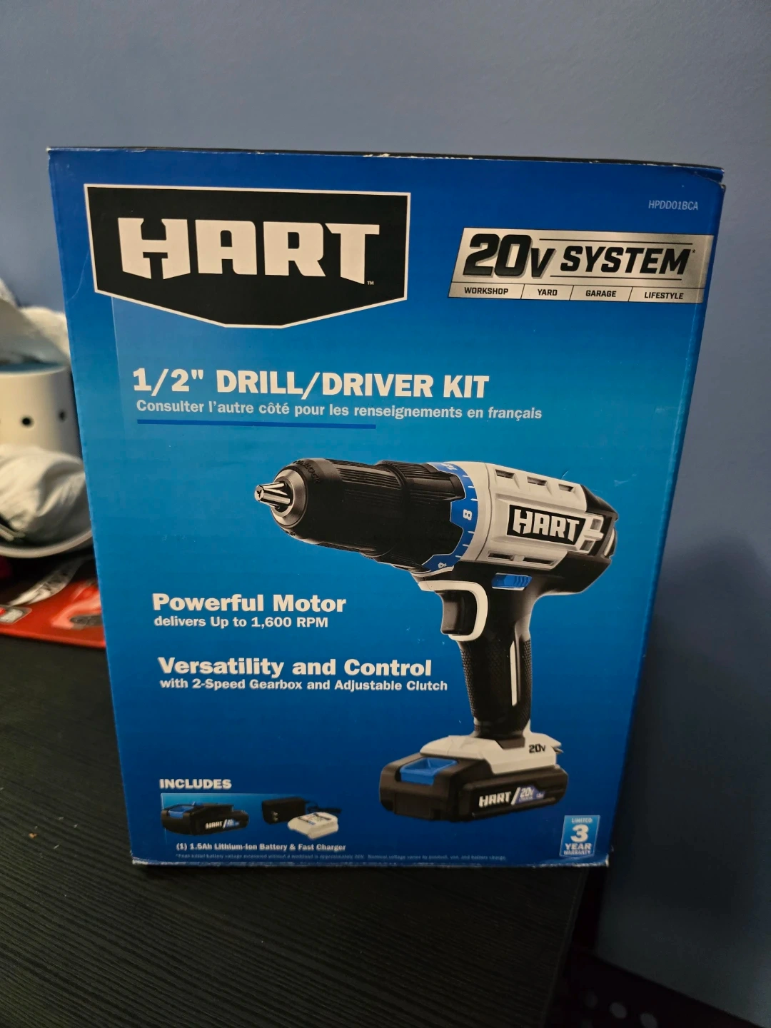 Selling a Hart 20V 1/2" Drill/Driver Kit in excellent condition! It features a powerful motor that delivers up to 1,600 RPM, with versatility and control thanks to its 2-speed gearbox and adjustable clutch. This kit includes (1) 1.5Ah Lithium-Ion Battery & Fast Charger.
