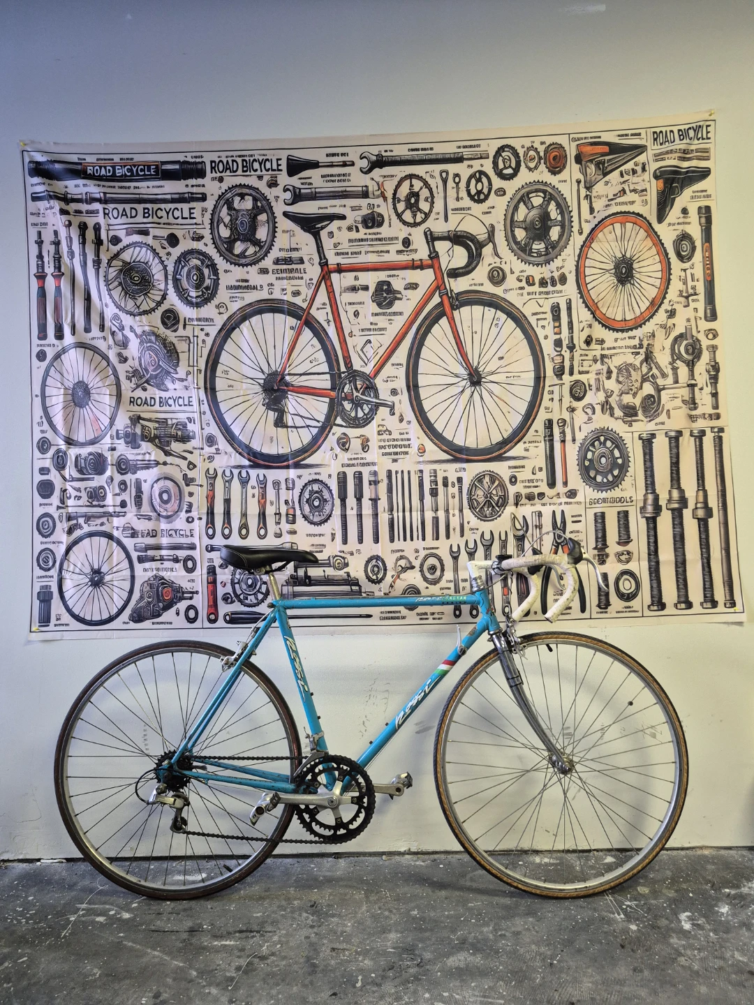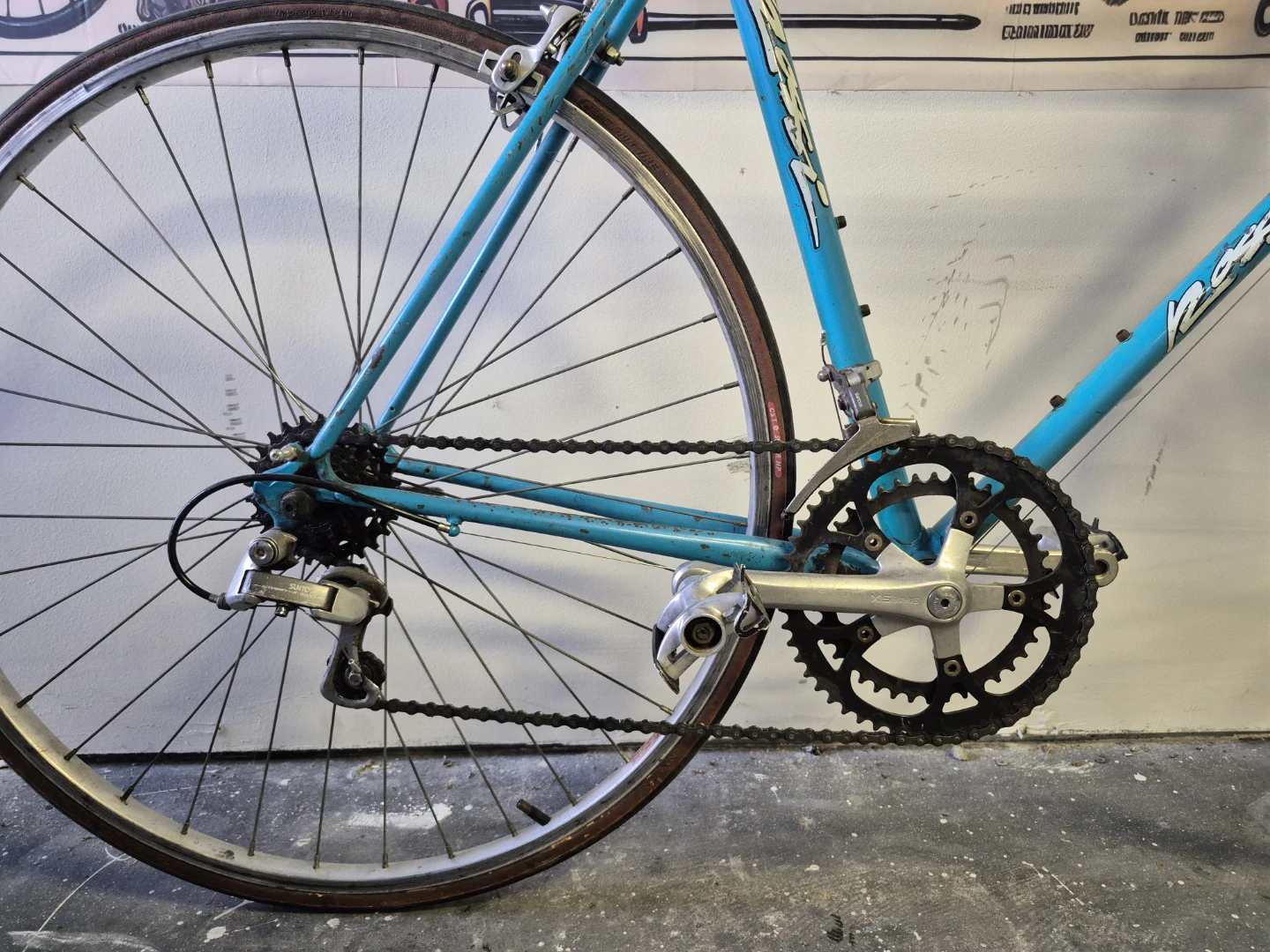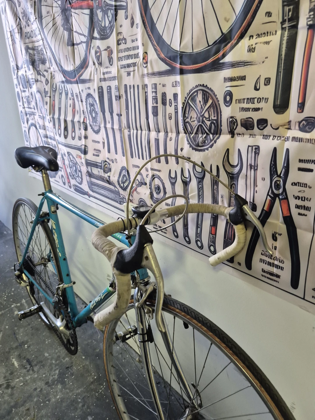 Selling a vintage Rossin road bike in a lovely turquoise colour! It's a classic piece perfect for cycling enthusiasts or anyone looking for a stylish ride around town. The frame has some wear and tear, but it's still in good condition for its age. A great find for a retro bike lover!