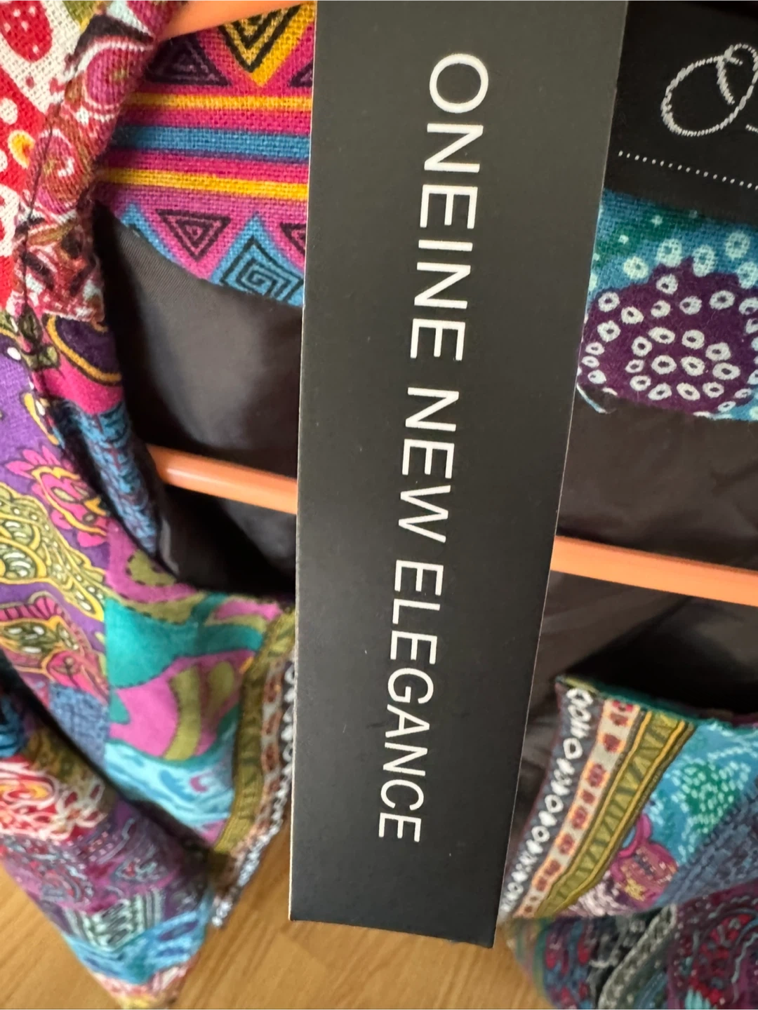 Here's a jacket from ONEINE NEW ELEGANCE with a really fun and colorful pattern! It's in great condition and ready for a new owner