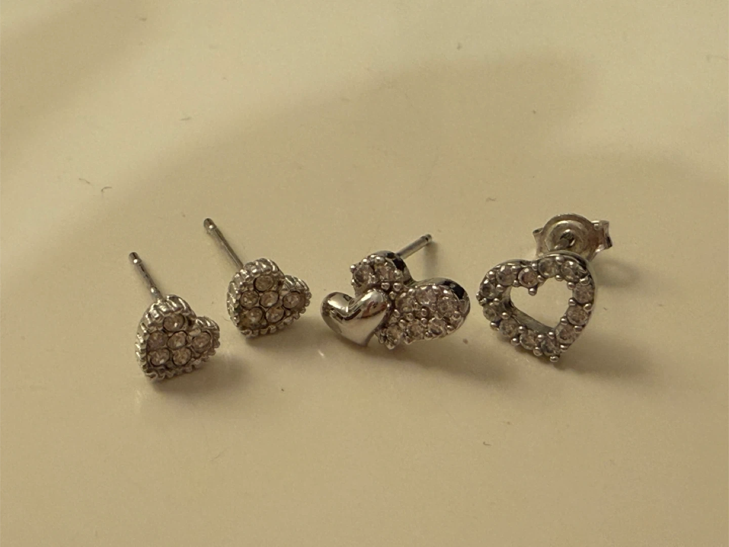 Here's a set of cute heart stud earrings! They're in great condition and ready to add a little sparkle to your day. Perfect for everyday wear or a special occasion