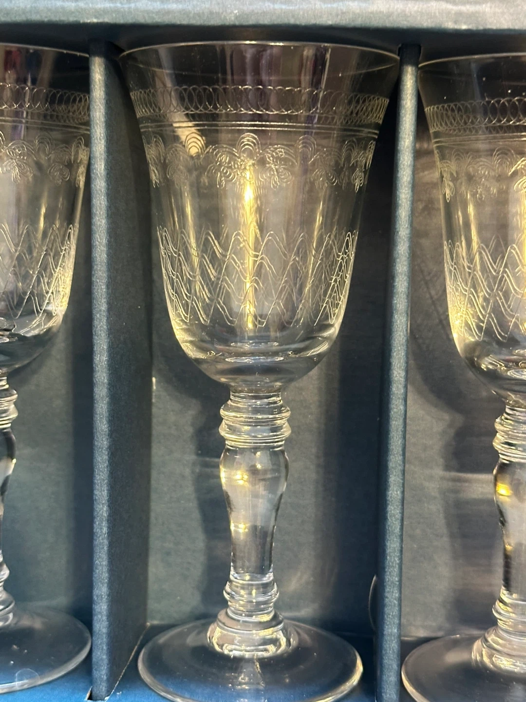 These glasses are handmade by craftsmen and come in their original box, perfect for adding a touch of elegance to your dining experience.
