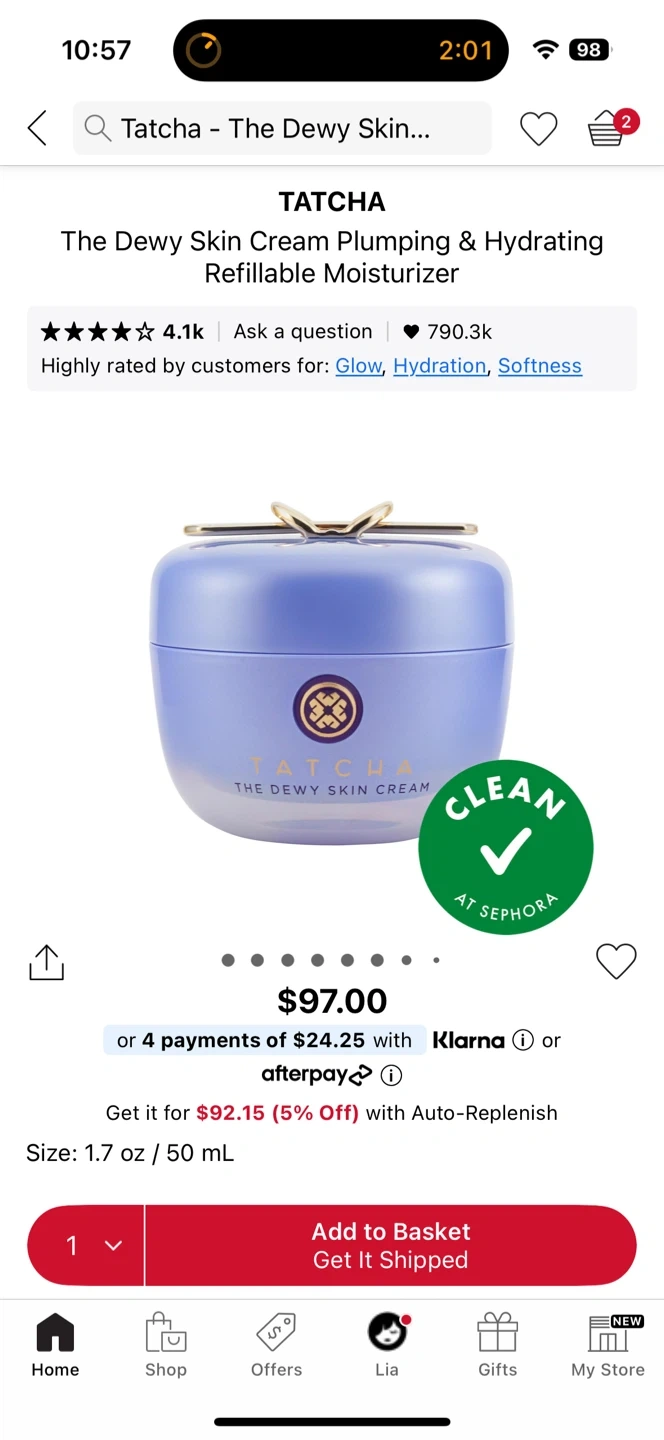 Selling a Tatcha The Dewy Skin Cream. It's a plumping and hydrating refillable moisturizer. Size is 1.7 oz / 50 ml. Retails for $97!
