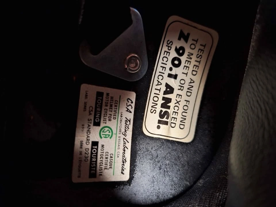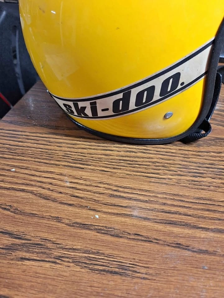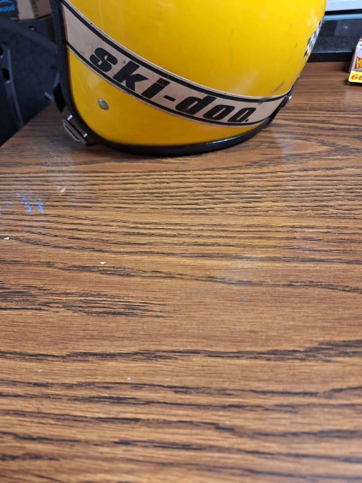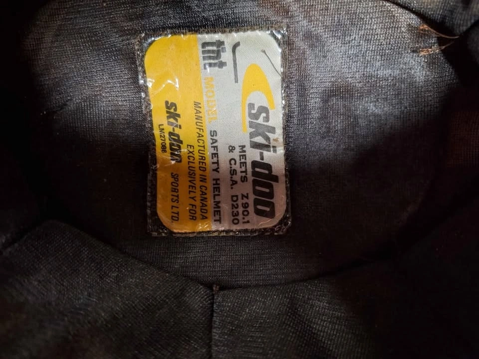 In pretty good shape for its age. The inner lining is detached from the inside of the helmet, the foam degraded and is basically just dust now, when you handle the inside of the helmet you get the foam dust all over your hands. It’s been in storage for 30 years. The foam around the neck and cheeks is actually still squishy and in decent shape. The lining could be left as is, reglued, or if you really wanted to you could cut it open and put new foam in it, if you plan to wear the helmet. It’s in better shape, as far as the inner lining goes, than most other ones I’ve seen listed. It’s got a reflective Ski-Doo sticker on each side, along with racing flag stickers on the back. These are all stock from the factory. Cool to wear with some tlc or add to your collection, thanks for looking. Upper small to lower medium size ....( advise from a professional)