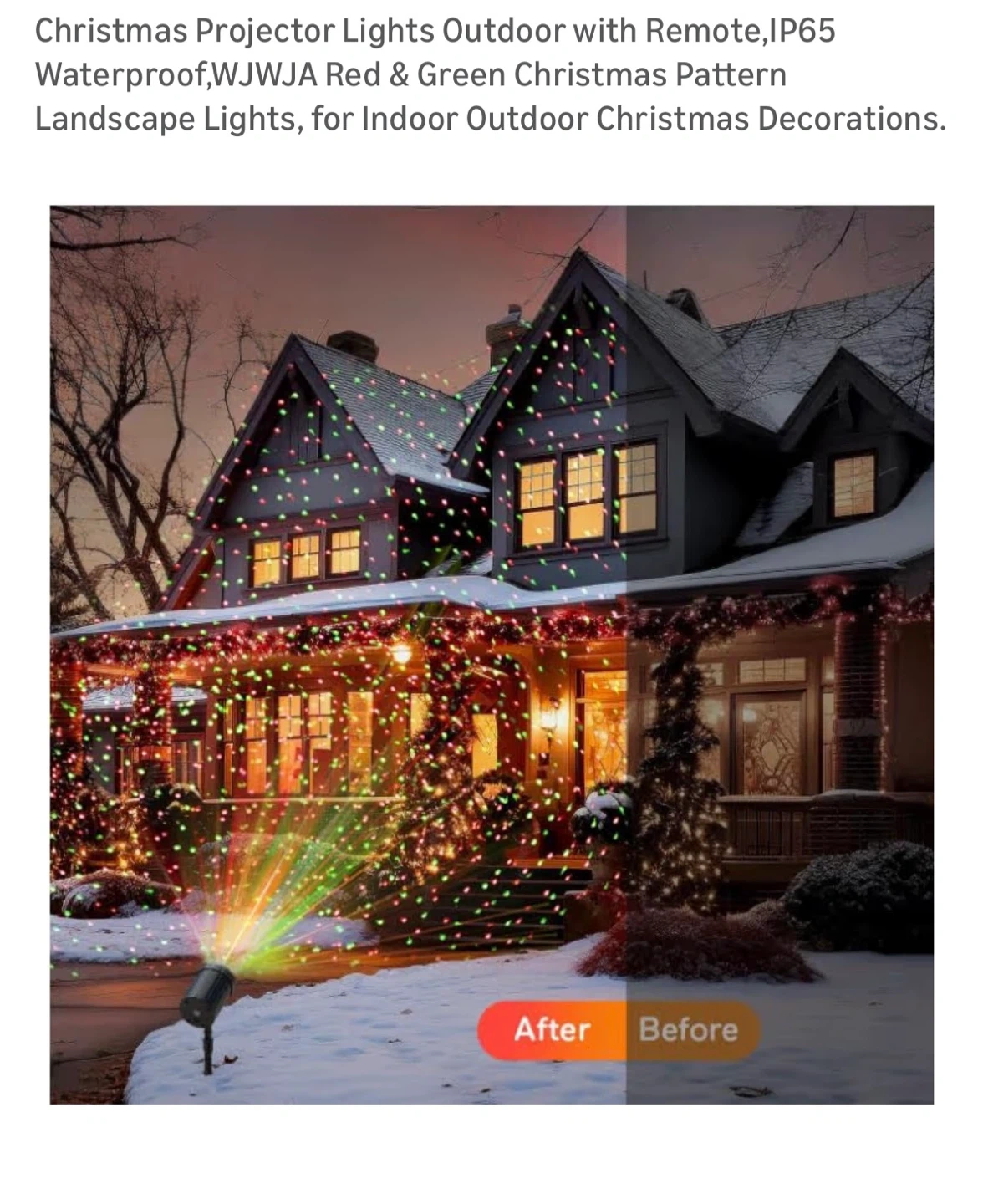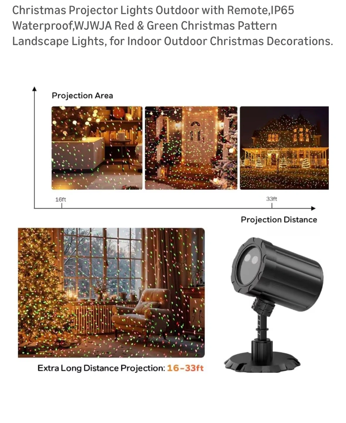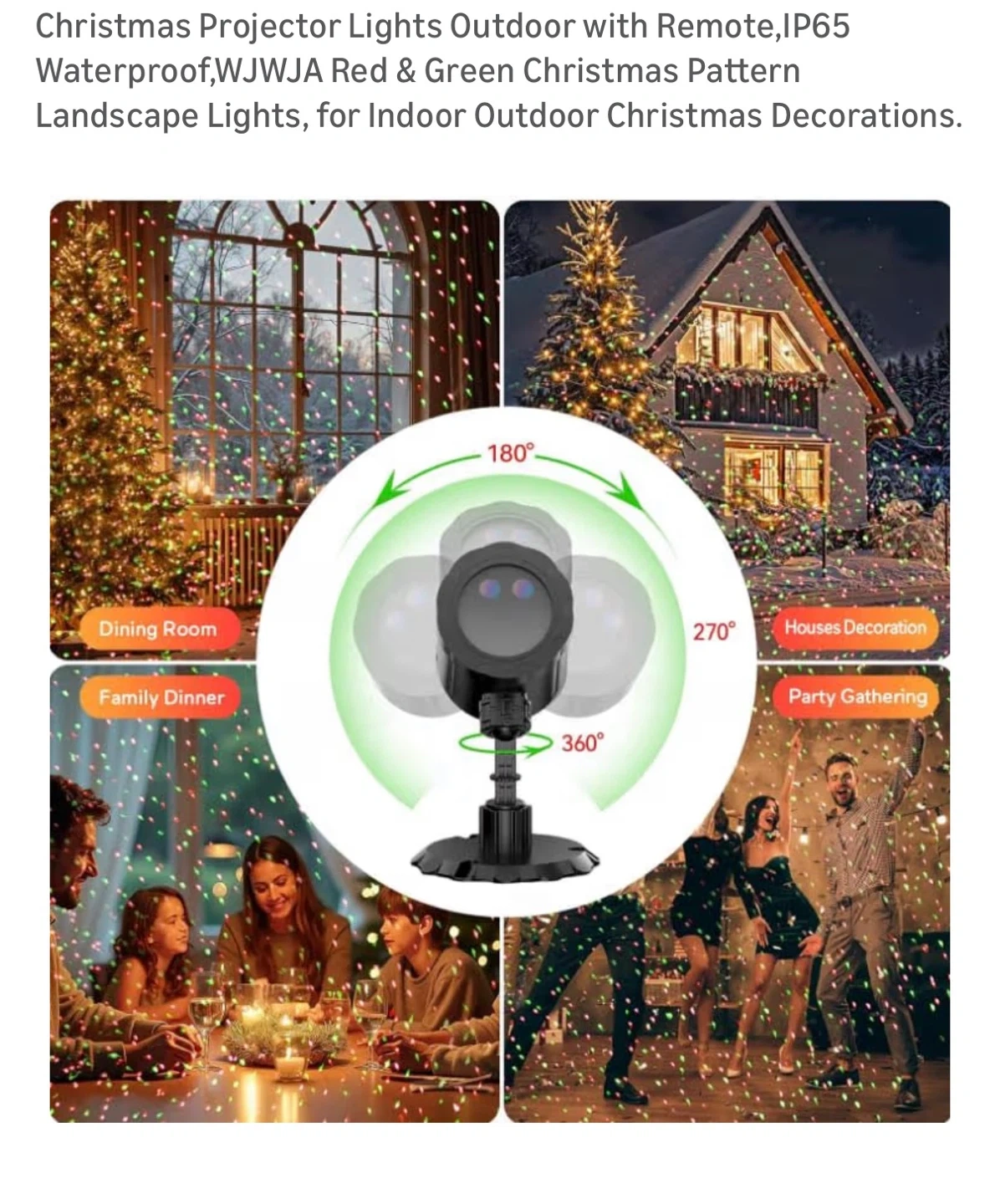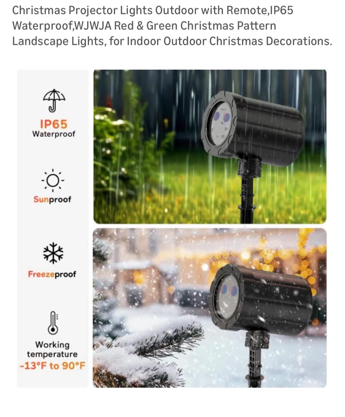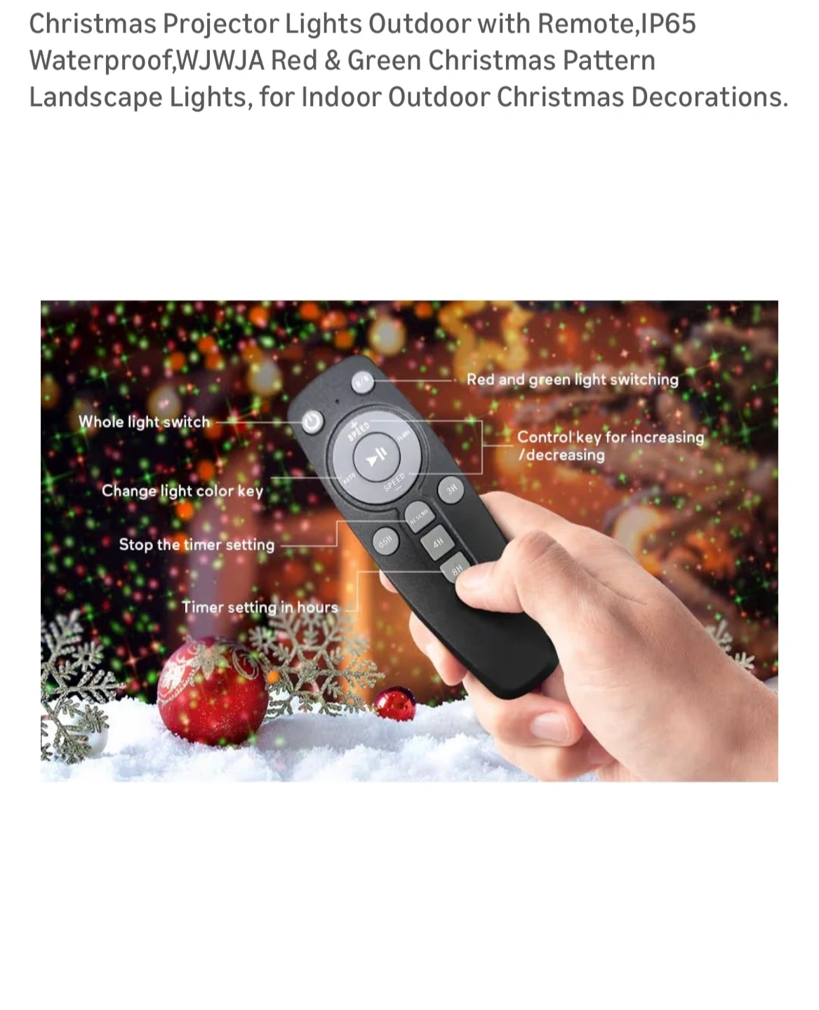 Christmas Projector Lights Outdoor with Remote,IP65 Waterproof,WJWJA Red & Green Christmas Pattern Landscape Lights, for Indoor Outdoor Christmas Decorations
