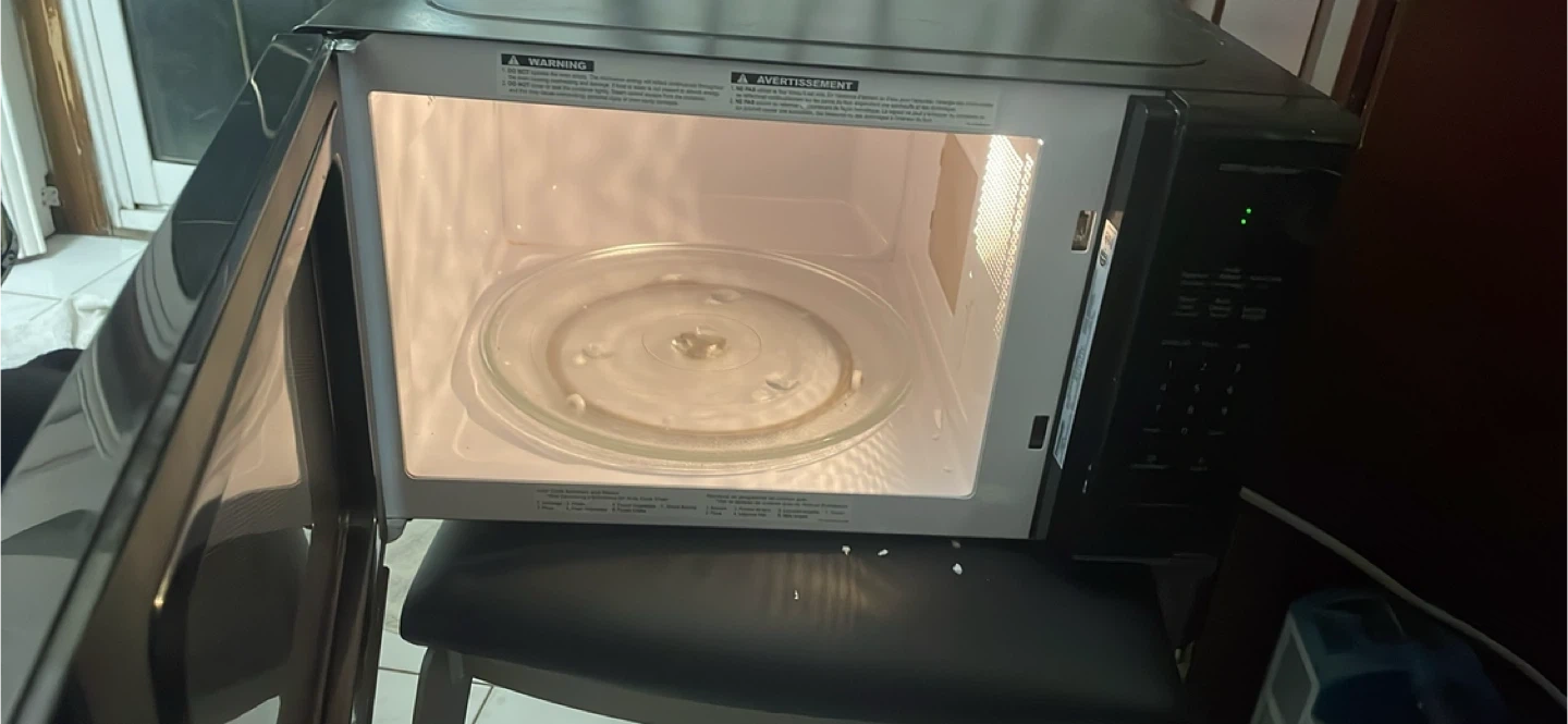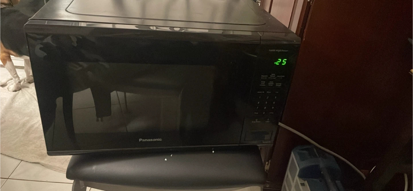 Selling a Panasonic microwave with 1100W high power. It's black and in good condition. Perfect for quick meals and reheating!
