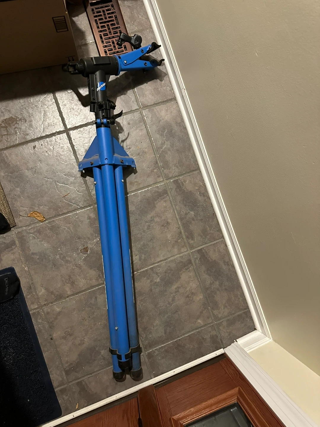 Dust in earlier photos was from indoor storage; stand is now clean and ready to use. This is a solid, stable home mechanic stand from Park Tool, the brand trusted by professional bike shops.