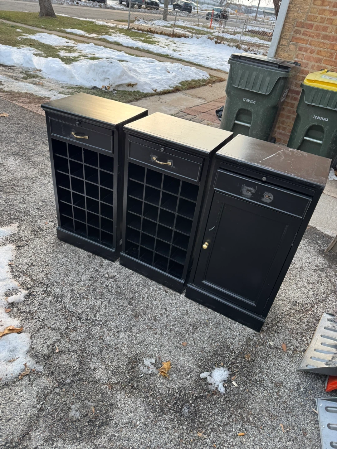 Buy & SellBlack Storage Cabinets - Set of 3Black Storage Cabinets - Set of 3$120Selling a set of three black storage cabinets. They each have a drawer and a lower storage area with dividers. The tops measure approximately 15 inches by 19 inches.EstadoGoodWHERE TO MEETCheck LocationView MapSELLERverifiedBennyMelrose Park1307 reviews0 chats·1 favorites·45 viewsSEND CHAT TO SELLERHi Benny! I’m interested in your listing.Hi Benny! I’m interested in your listing.Get the Karrot app to chatSign In to chat