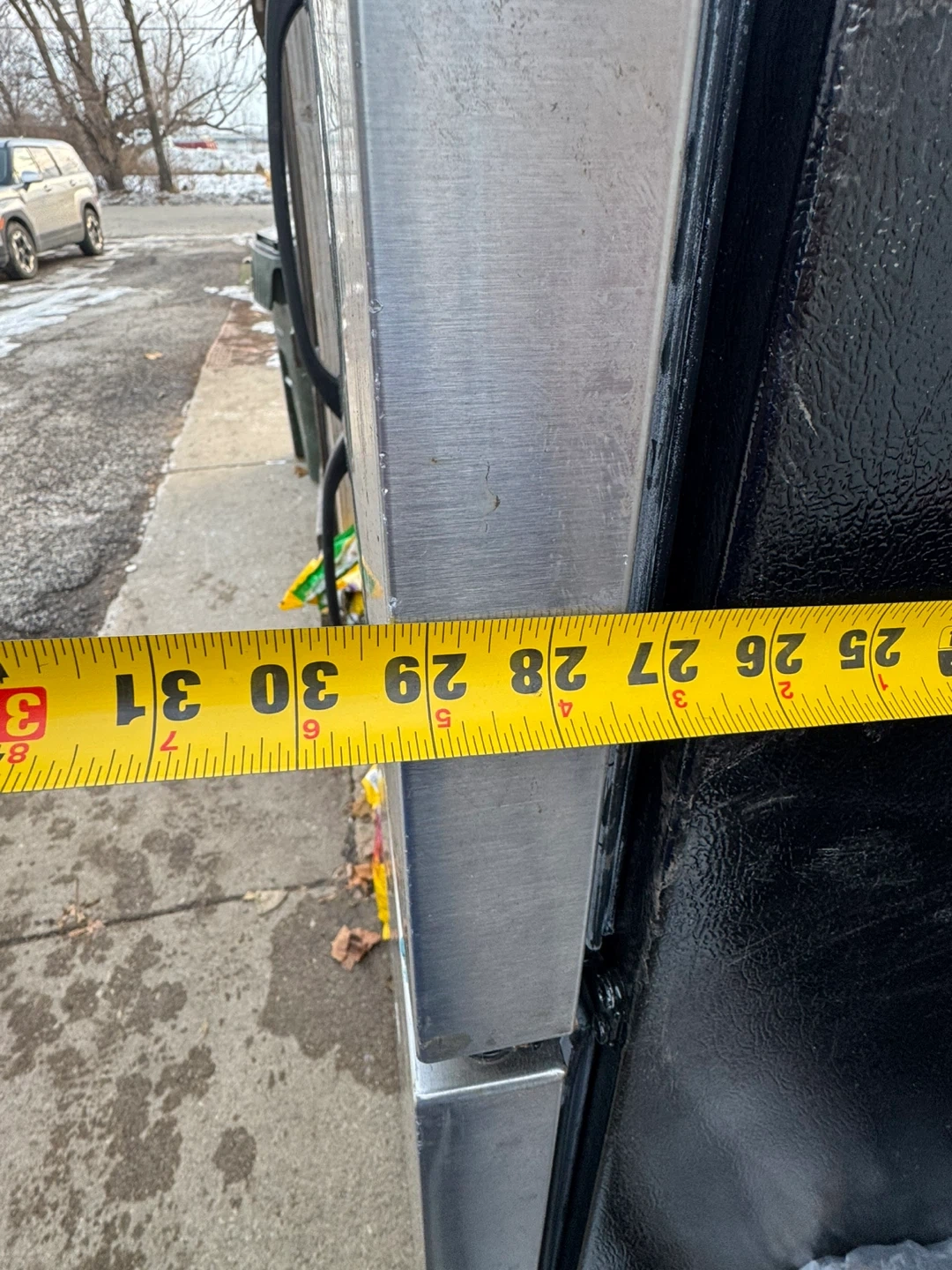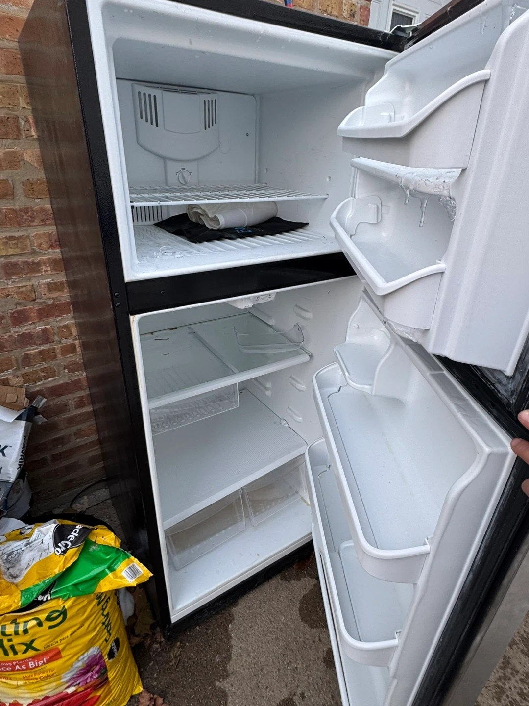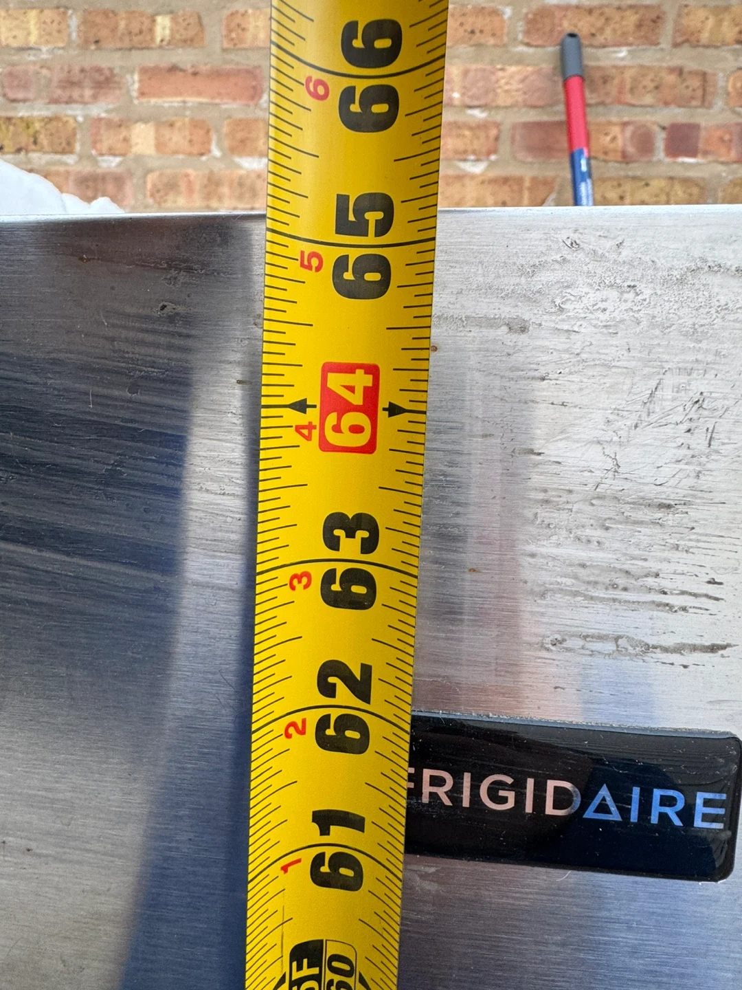 Selling a Frigidaire top freezer refrigerator. It's in used condition and measures approximately 66 inches tall and 32 inches wide. Great for extra storage!