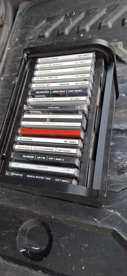 The Beatles Collection (1988 Release) - 16 CD with Roll-top Black Box Set. The roll up box is damaged but the CDs have zero scratches blemishes clouding or fading, same with the cases.