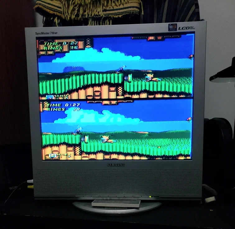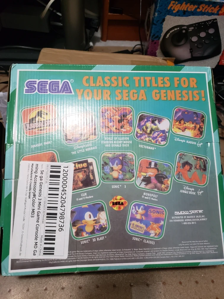 Box was opened to game game cartridges. Plays all original Sega Genesis model 1 game cartridge and also has a couple built in games.