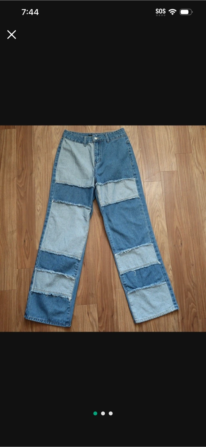 These patchwork jeans are a unique addition to any wardrobe! They feature a stylish design with different shades of denim. The jeans are in great condition and ready for a new owner!