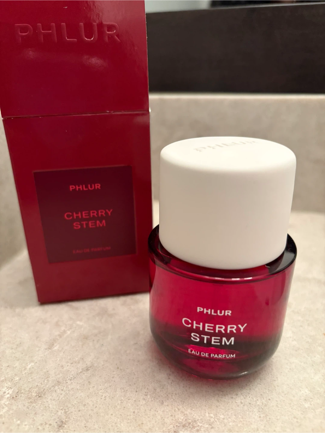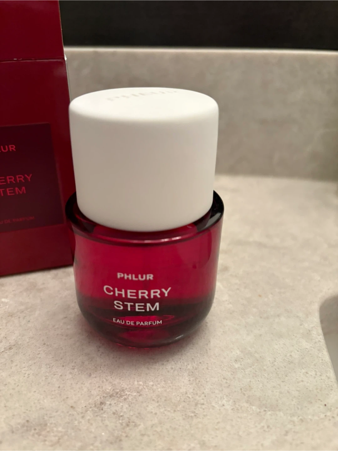 Selling a bottle of PHLUR Cherry Stem Eau de Parfum! It comes in its original box. The scent profile includes black cherry, red freesia, plum nectar and ebony woods. A lovely fragrance!