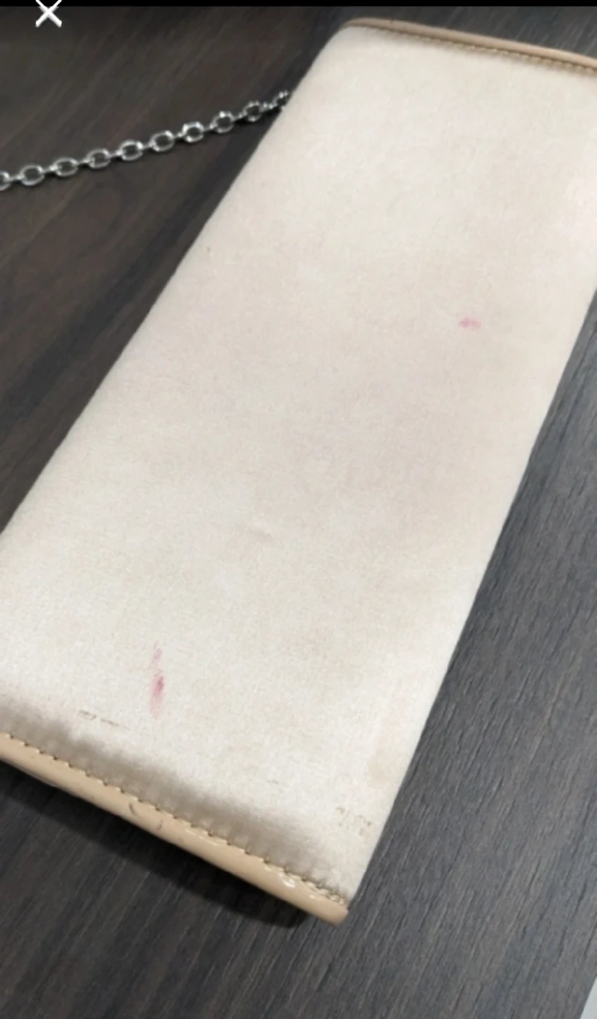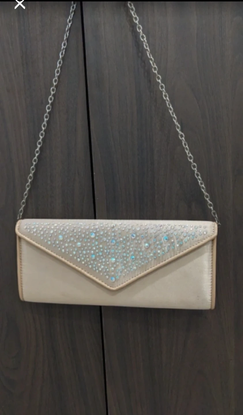 This is a lovely Aldo evening clutch, perfect for special occasions🎄✨ It features a delicate chain strap and is adorned with rhinestones. There are some small marks on the exterior, as shown in the photos.