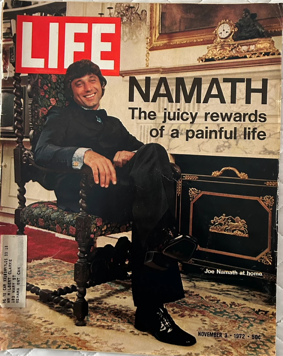 Selling a vintage LIFE magazine from November 3, 1972, featuring Joe Namath. It's a great piece of pop culture history!
