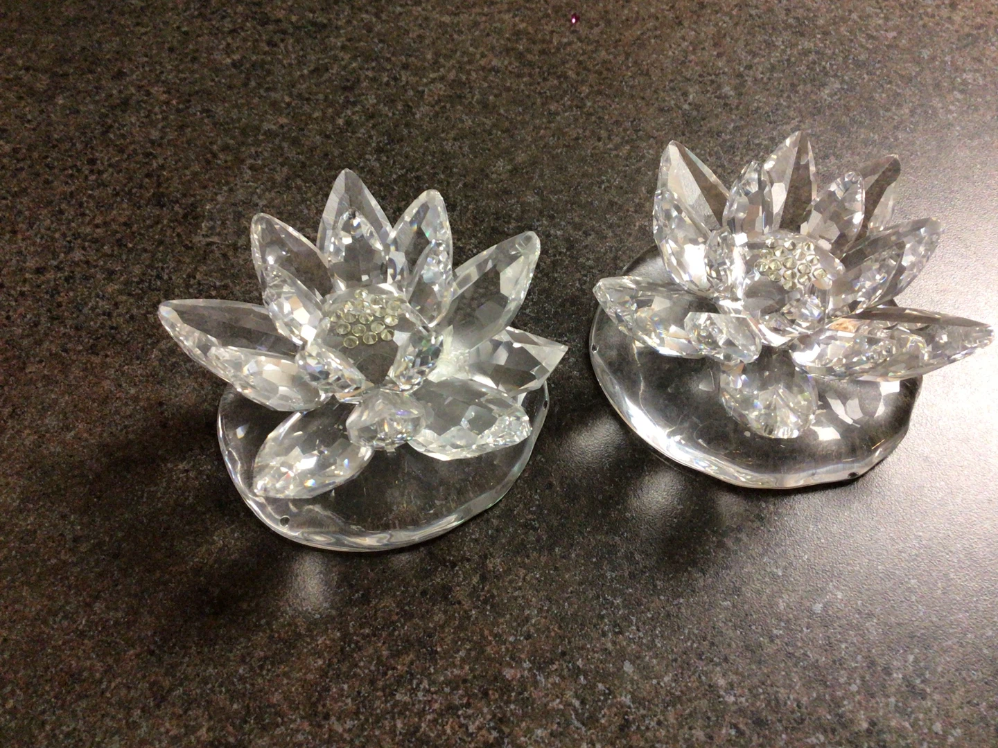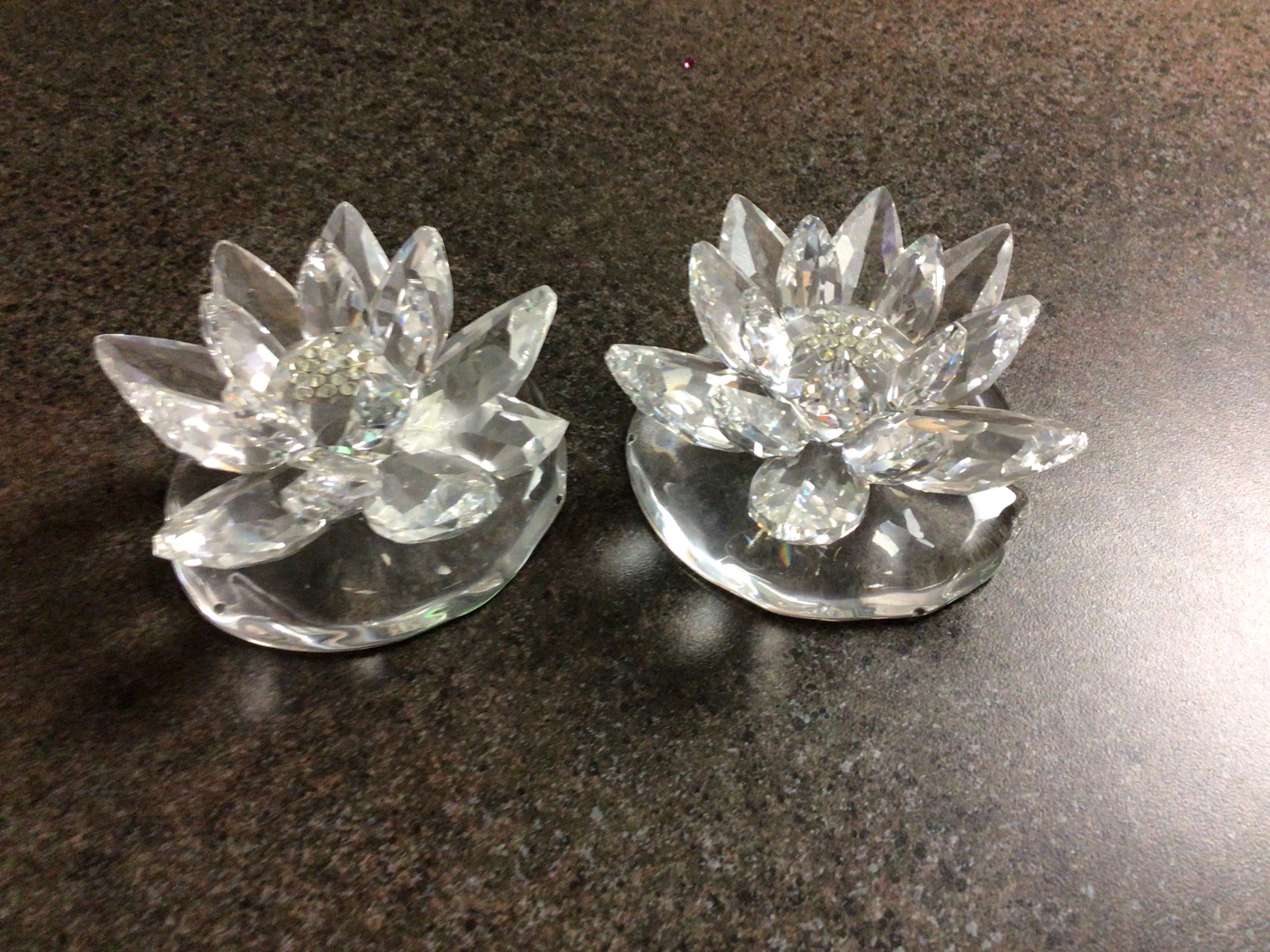 Selling a pair of beautiful Swarovski crystal lotus flower figurines! These are in excellent condition and would make a lovely addition to any collection or home deco