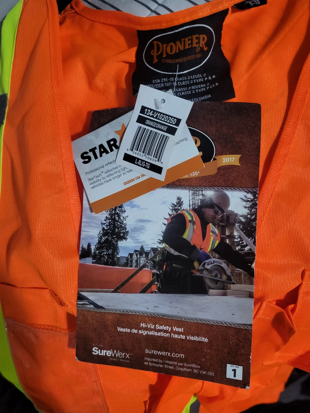 I'm selling a brand new Pioneer Hi-Viz Safety Vest in size L. It's in great condition and ready to keep you safe and visible on the job! Features reflective stripes and multiple pockets for your convenience