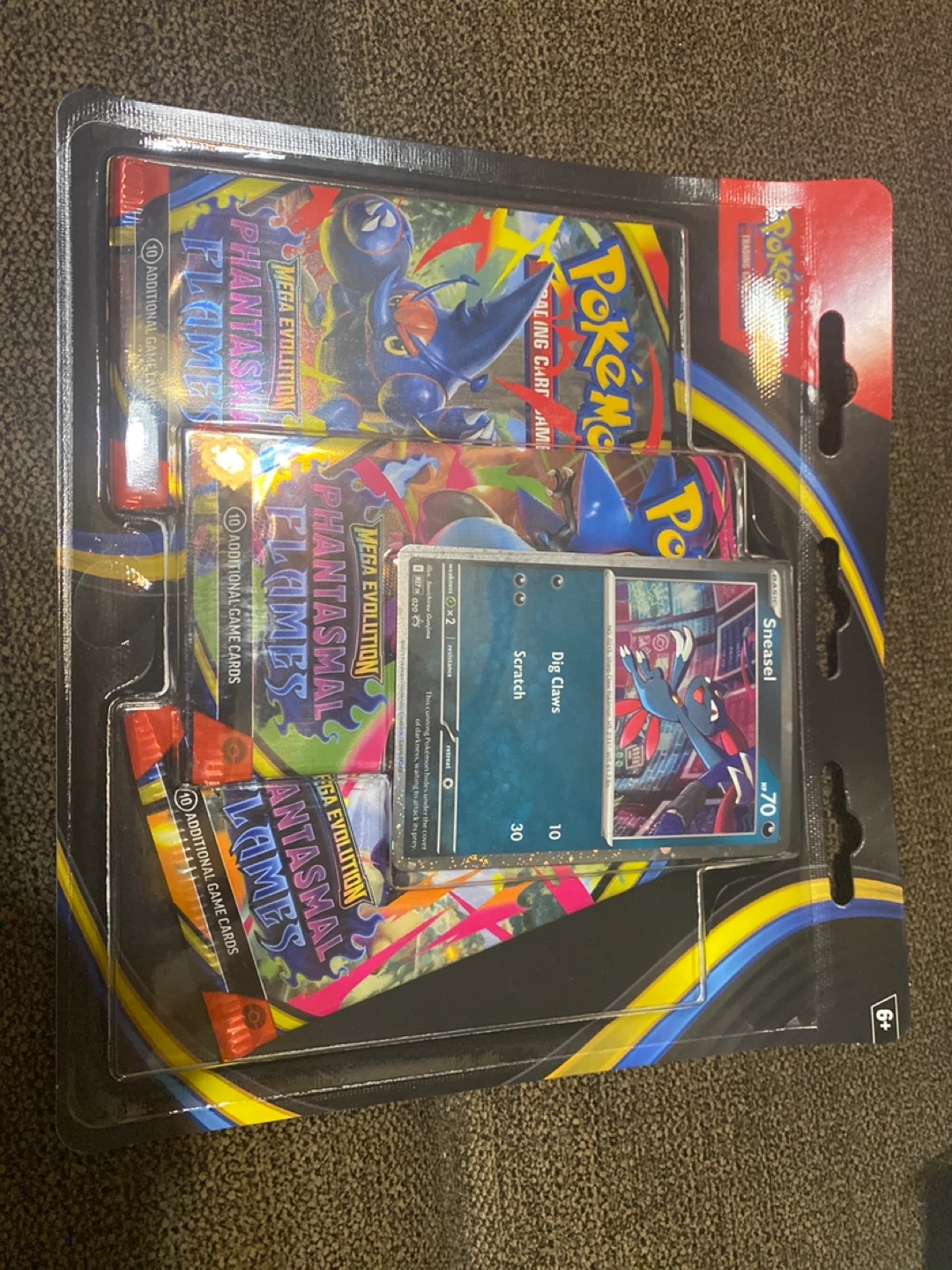 Selling a Pokemon TCG Mega Evolution Phantasmal Flames pack. This includes additional game cards and features Sneasel. Great for any Pokemon card collector!