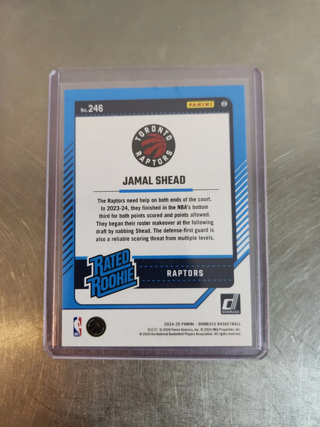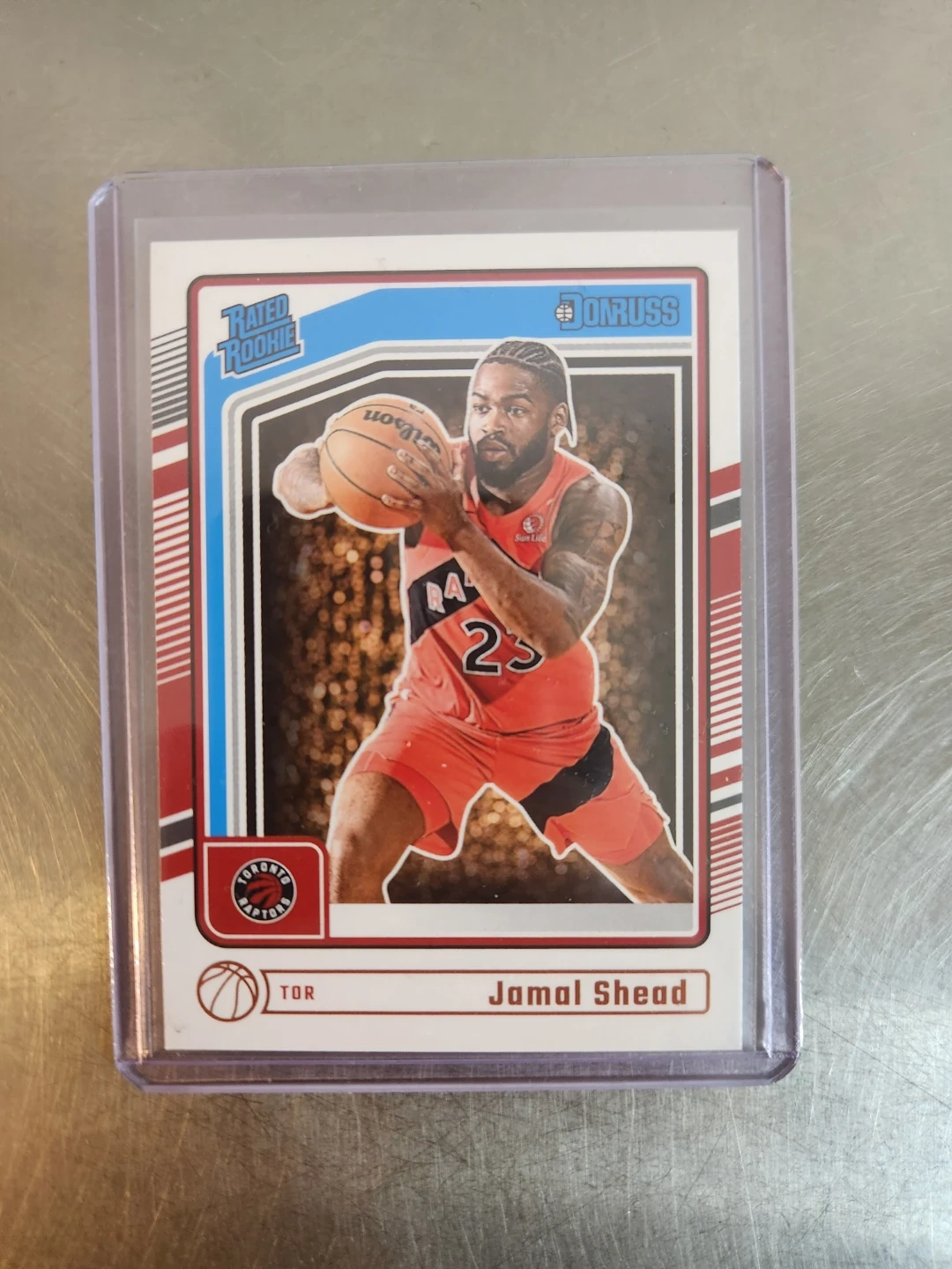 Selling a Jamal Shead Toronto Raptors Rated Rookie basketball card. It's in great condition and comes in a protective case. A must-have for any Raptors fan or card collector!