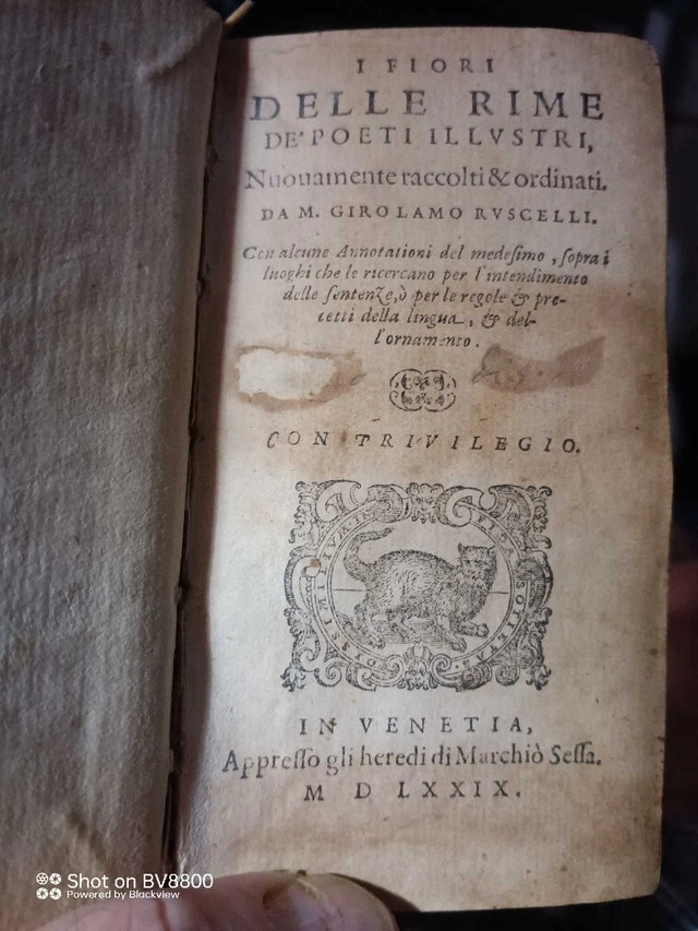 Discover a rare find with this antique book of poetry, published in 1579. This book, titled "I Fiori Delle Rime De' Poeti Illustri", is a compilation of works by notable poets and is printed in Venice by the heirs of Marchio Sella. Given its age, the book shows signs of wear, adding to its historical charm and making it a unique collectible. A tangible piece of literary history, this book offers a glimpse into the poetic styles and sentiments of the late 16th century. I'm not a book expert, so please rely on the images to assess the condition. Isn't it fascinating to hold a piece of history in your hands? Just a heads-up, if the ad's still up, the book's still available!
