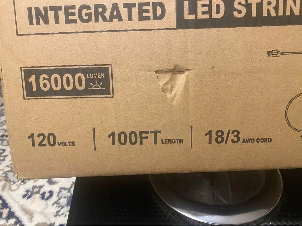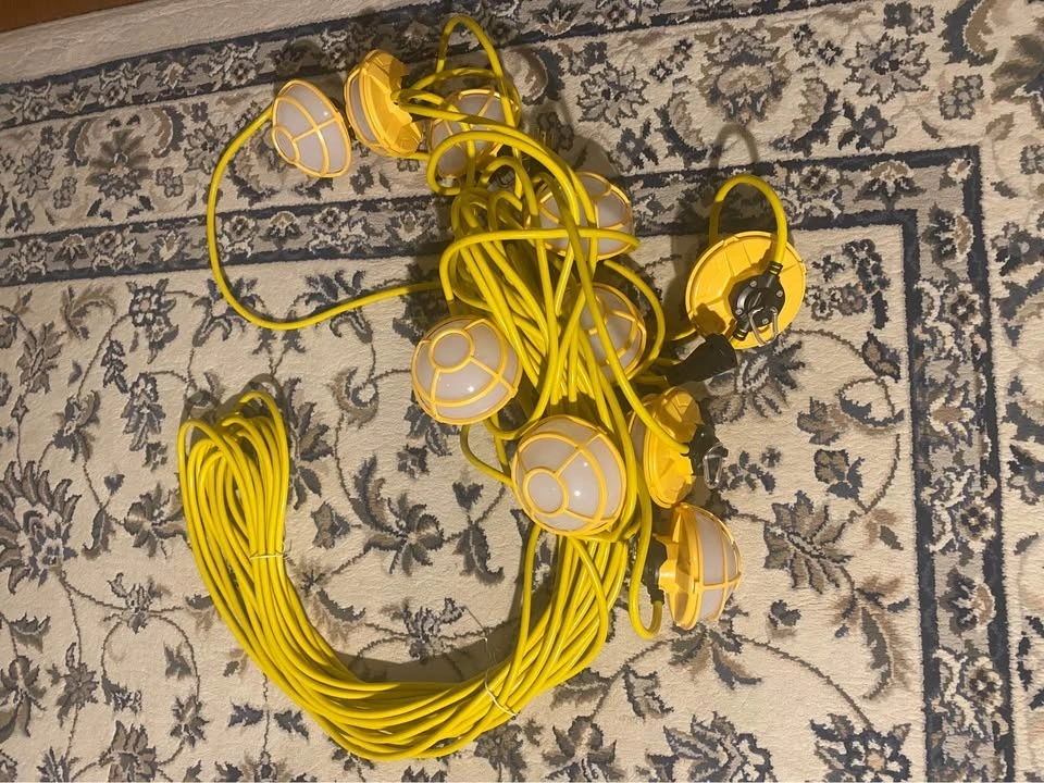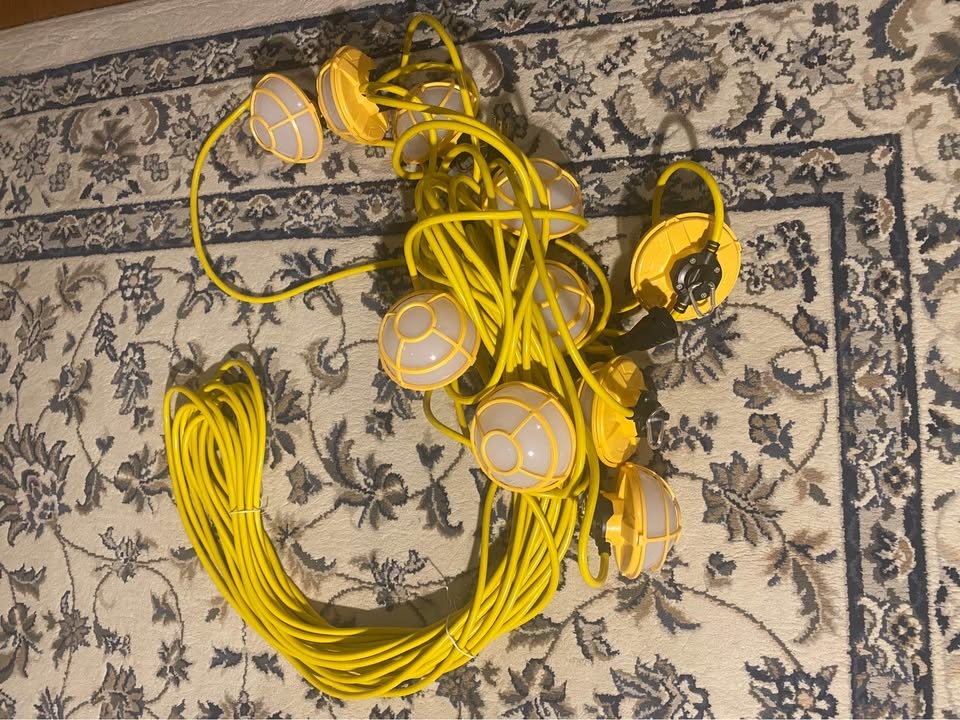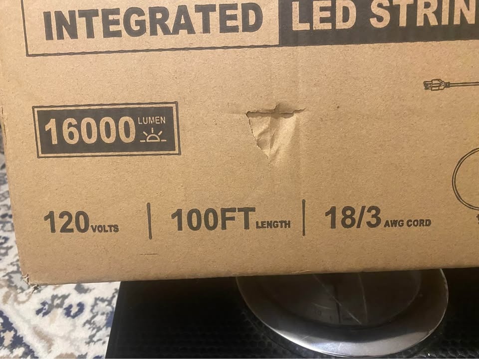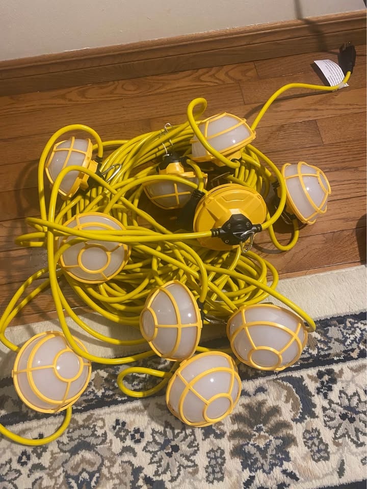 100FT Construction String Lights, 130W 16000LM Industrial Grade 3 Prong LED String Work Lights for Construction Sites, Temporary Work, Jobsite, Outdoor Lighting with Protective Cages, Hooks