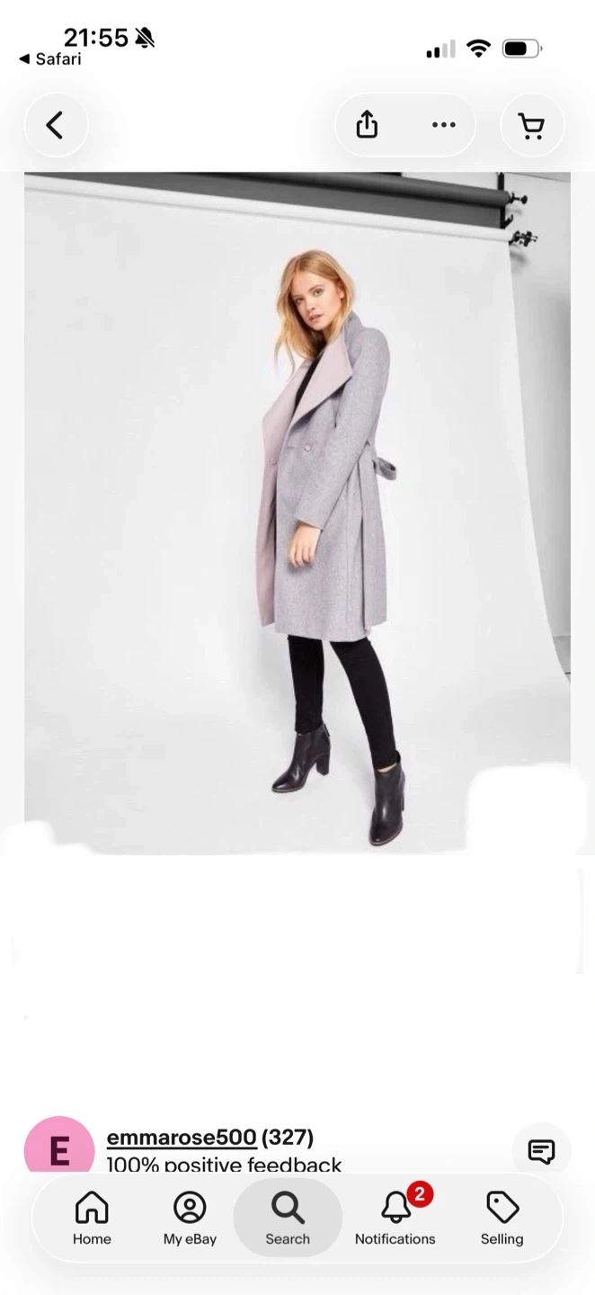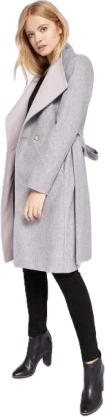 Selling a lovely Ted Baker London wool blend coat in a beautiful grey and pink colour. The coat features a flattering silhouette with a tie waist.