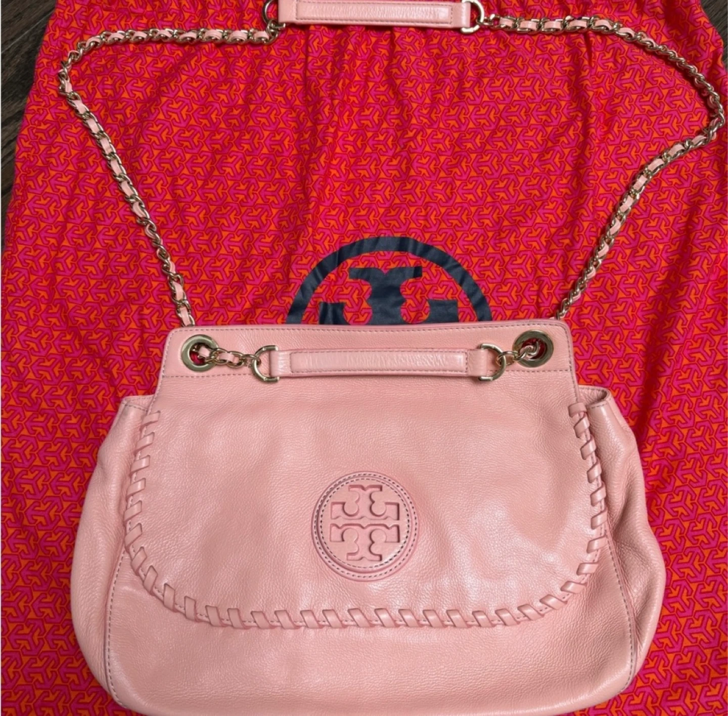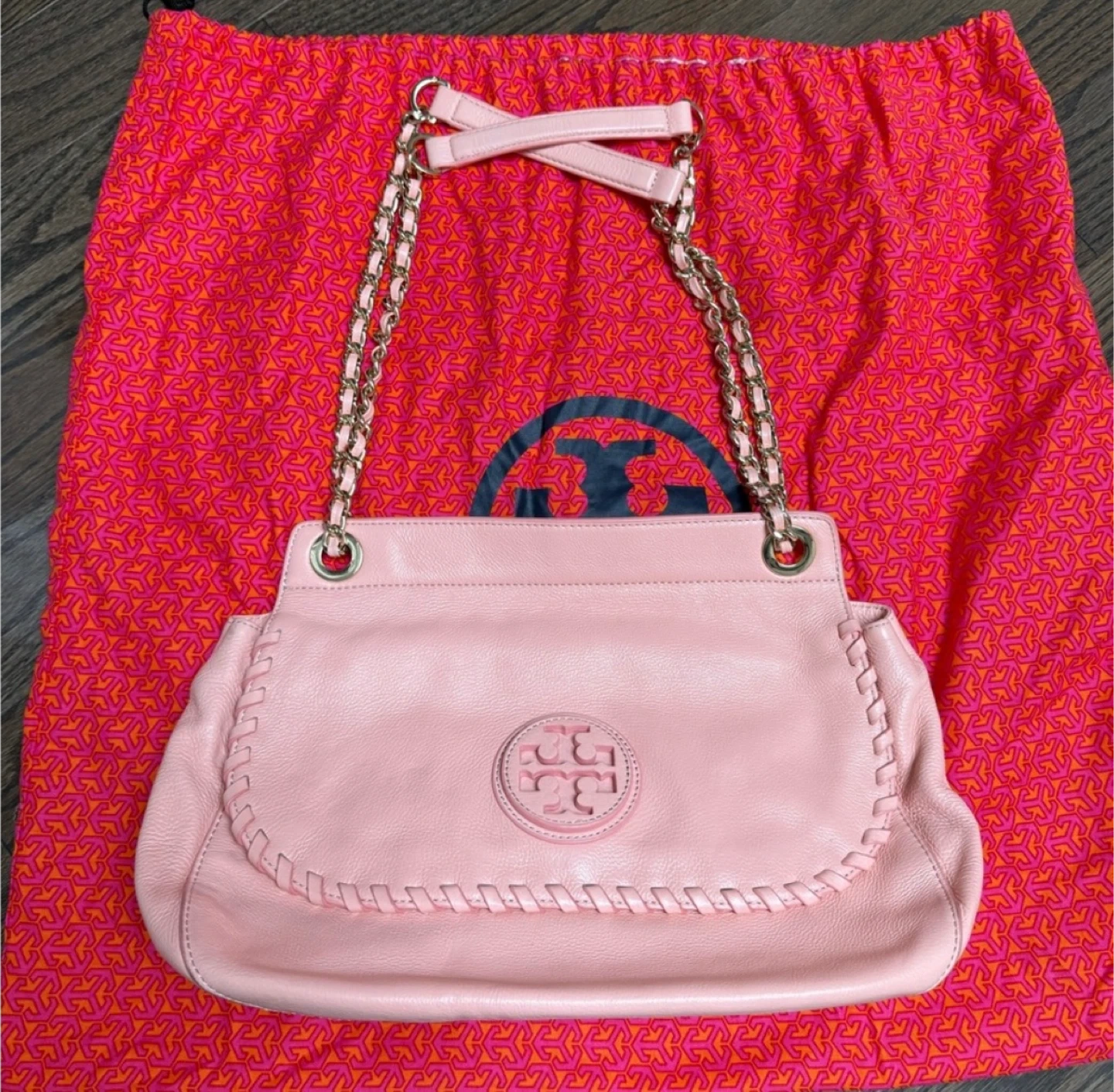 Authentic Tory Burch dusty pink whipstitch bag. Excellent condition. Comes with Tory Burch dust bag. Non smoking home.