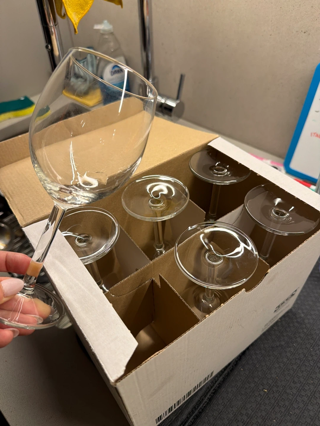 Selling a set of 6 IKEA wine glasses! They come in their original box, ready for their new home. Perfect for entertaining or just enjoying a glass of wine after a long day