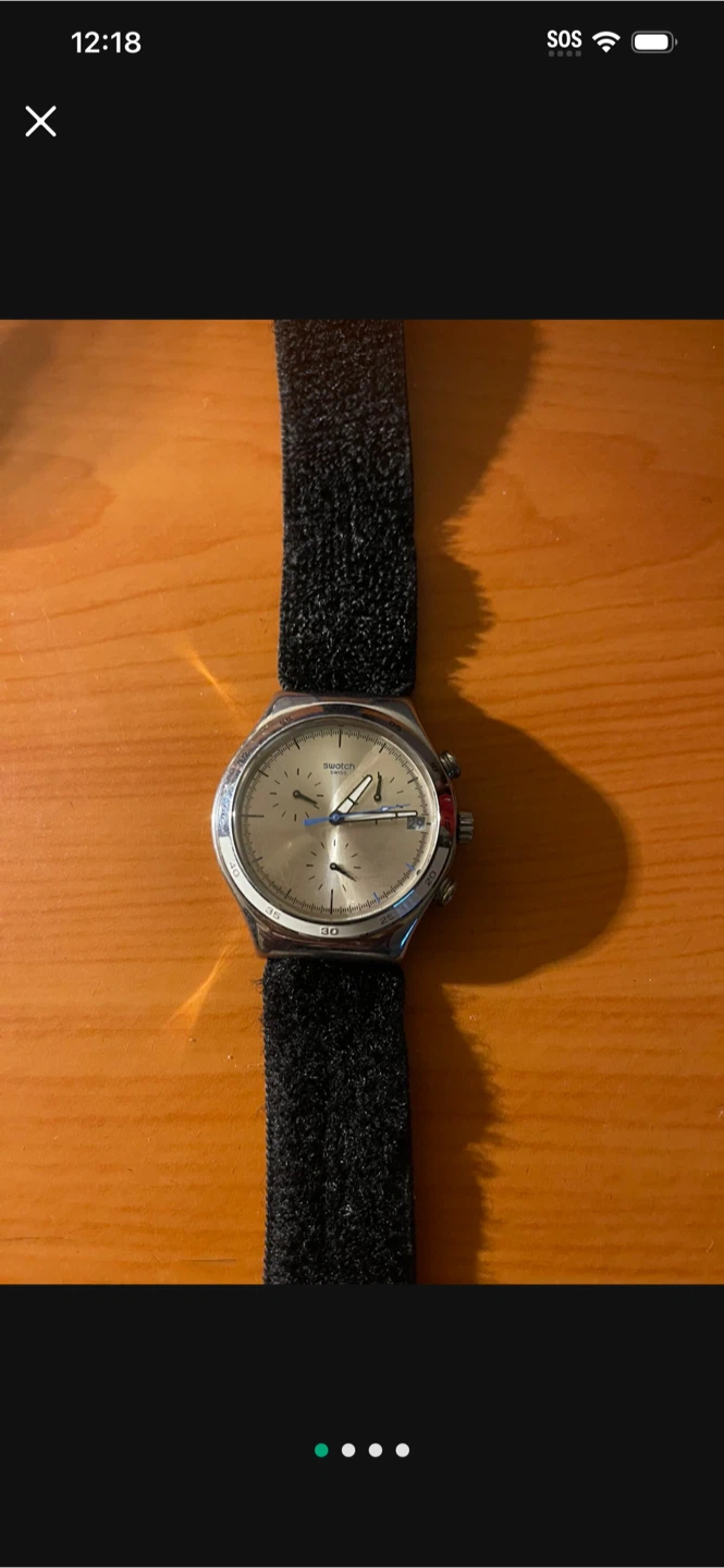 Selling a Supreme x Swatch watch! The watch features a black band and a silver-tone face. It's in great condition and ready for a new wrist!