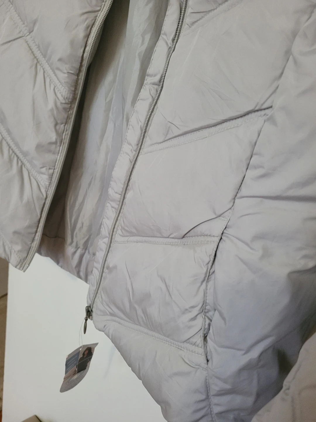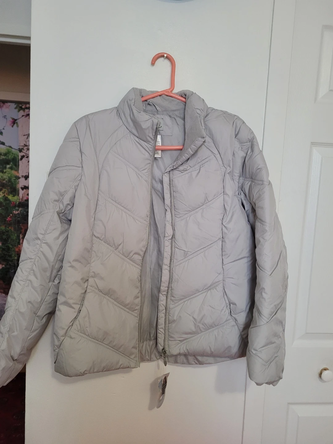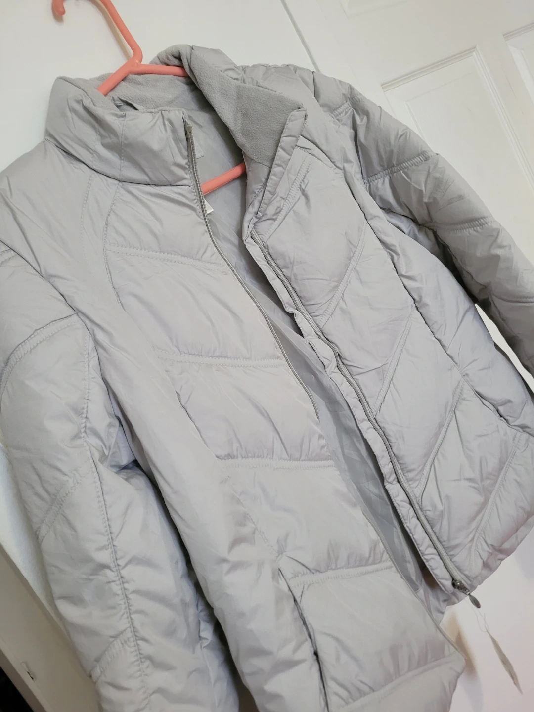 Cozy Athletic Works winter jacket in a lovely grey dawn colour! It's a size medium (8/10) and is made of 100% polyester. Perfect for staying warm this winter season! Its rand new and light weight woman jacket for winter.