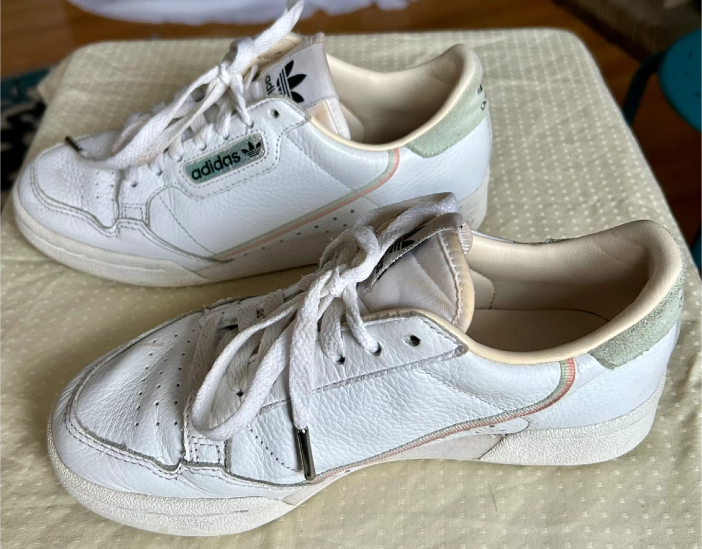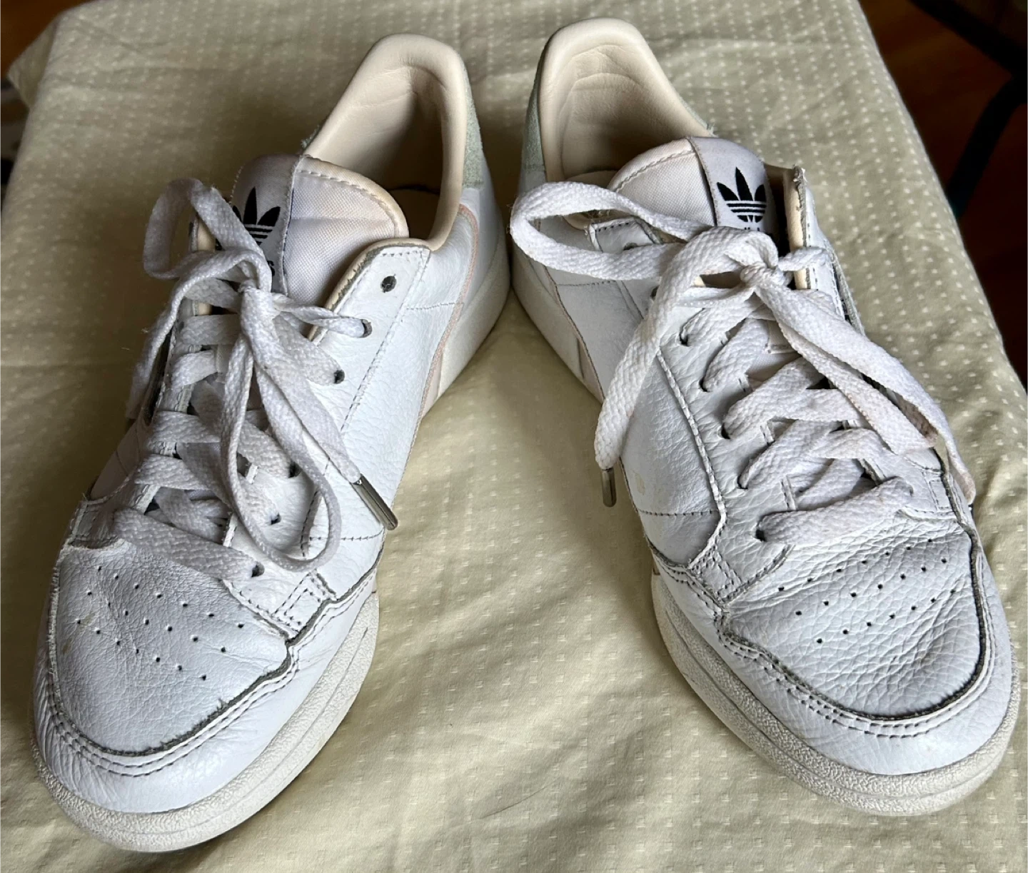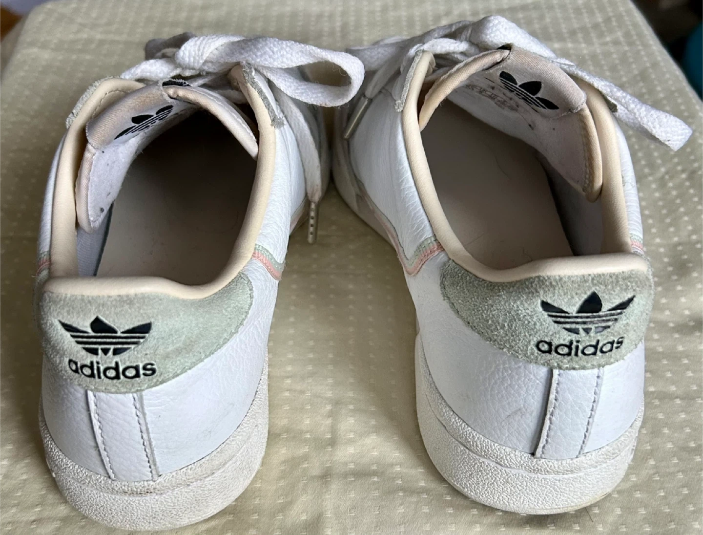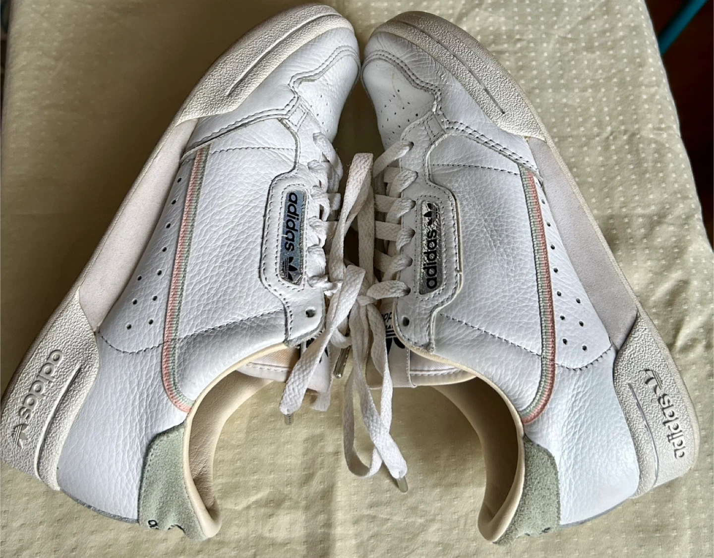 Selling a pair of used Adidas Continental 80 gym shoes in white. They're in good condition and ready for a new owner! These classic sneakers are comfortable and stylish, perfect for everyday wear. Size is 6.5 but Adidas tend to run on the bigger side , I usually wear size 7.5/8 for reference.