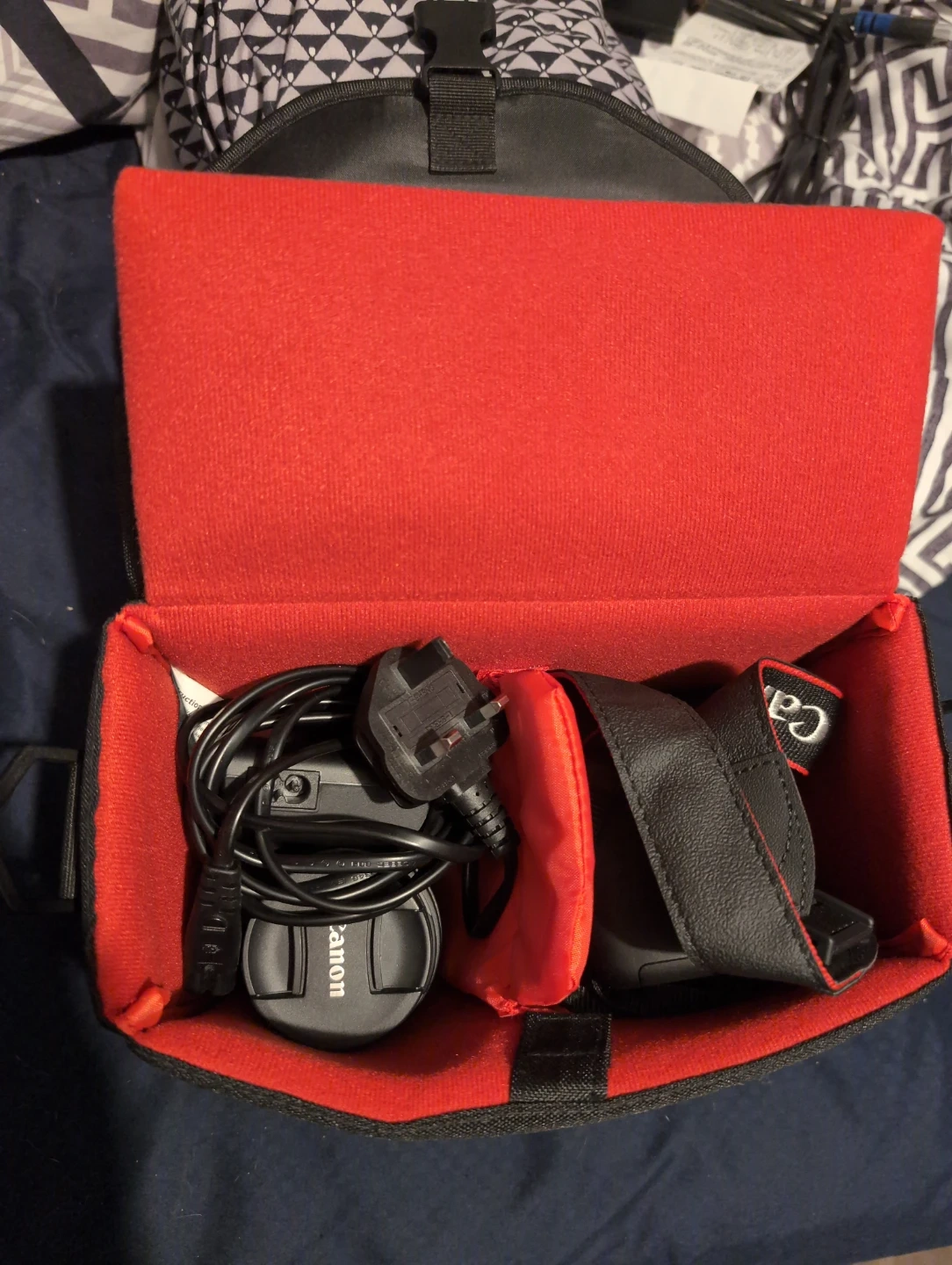 Selling a Canon EOS 2000D camera with an EFS 18-55mm lens! It comes with a charger and a handy carrying case to keep everything organized. Perfect for anyone looking to get into photography or upgrade their current setup.