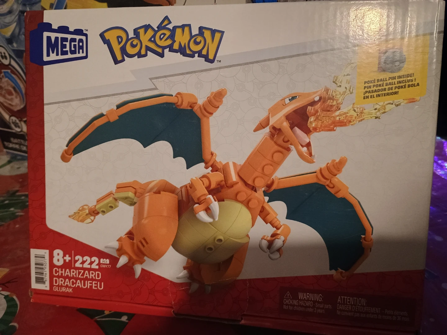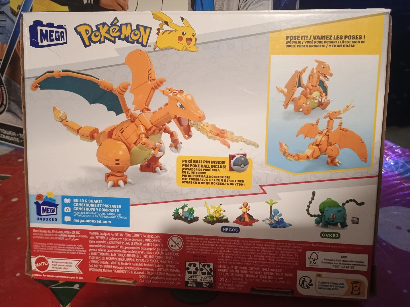 Charizard Mega Blok 222 pieces, new product with only minor imperfections in the box. Starting price is $10 Canadian dollars.
