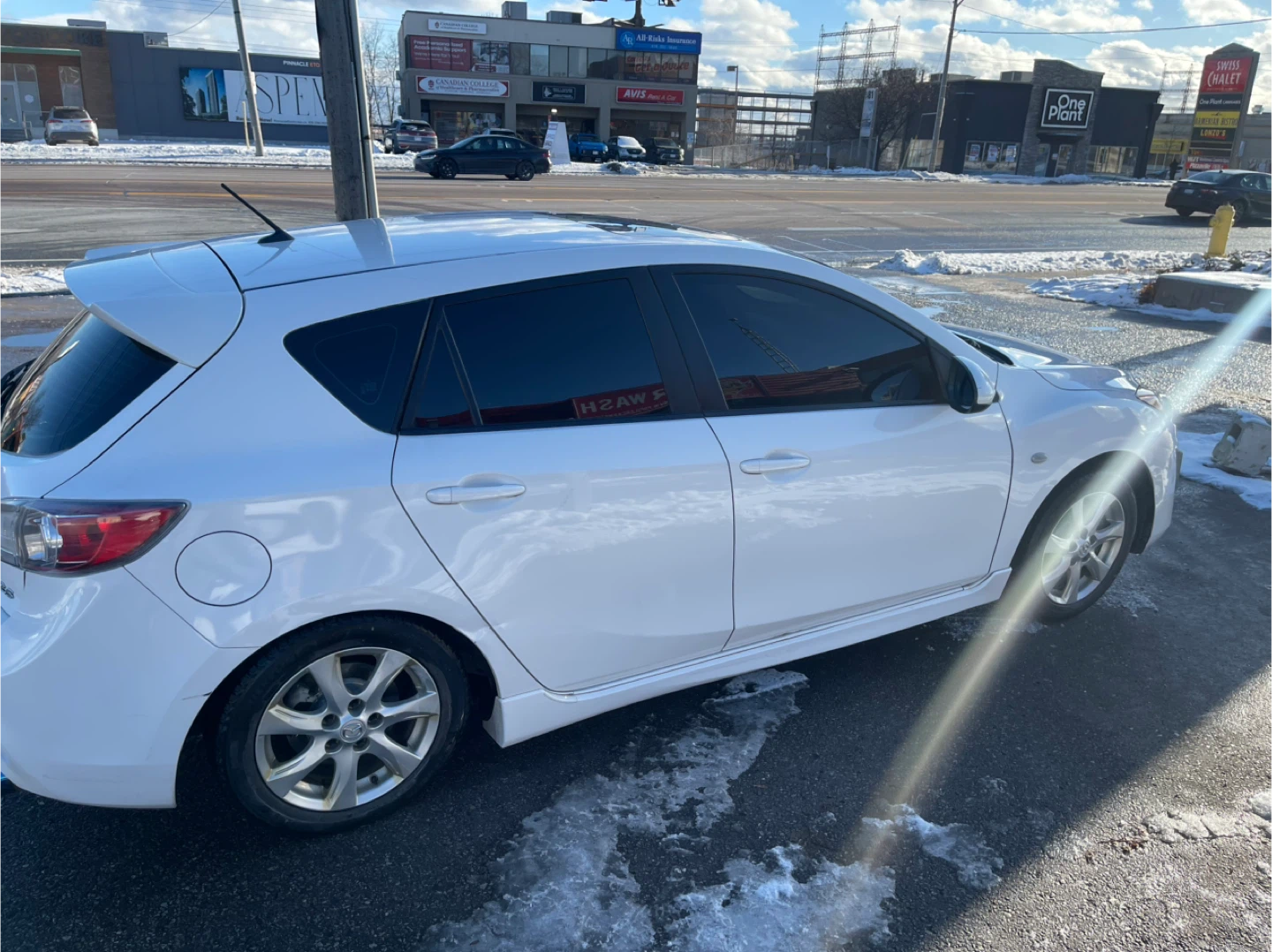 Selling a white Mazda 3 hatchback. It has a 2.5 engine. The car is in good condition with clean title. Drives extremely well with a joyful Manual transmission!