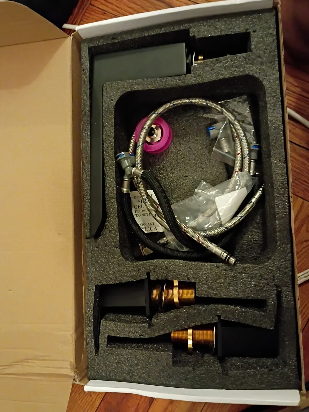 Selling a brand new matte black bathroom faucet still in its original box! It includes all the components and accessories you need for installation. This faucet will add a sleek and modern touch to your bathroom