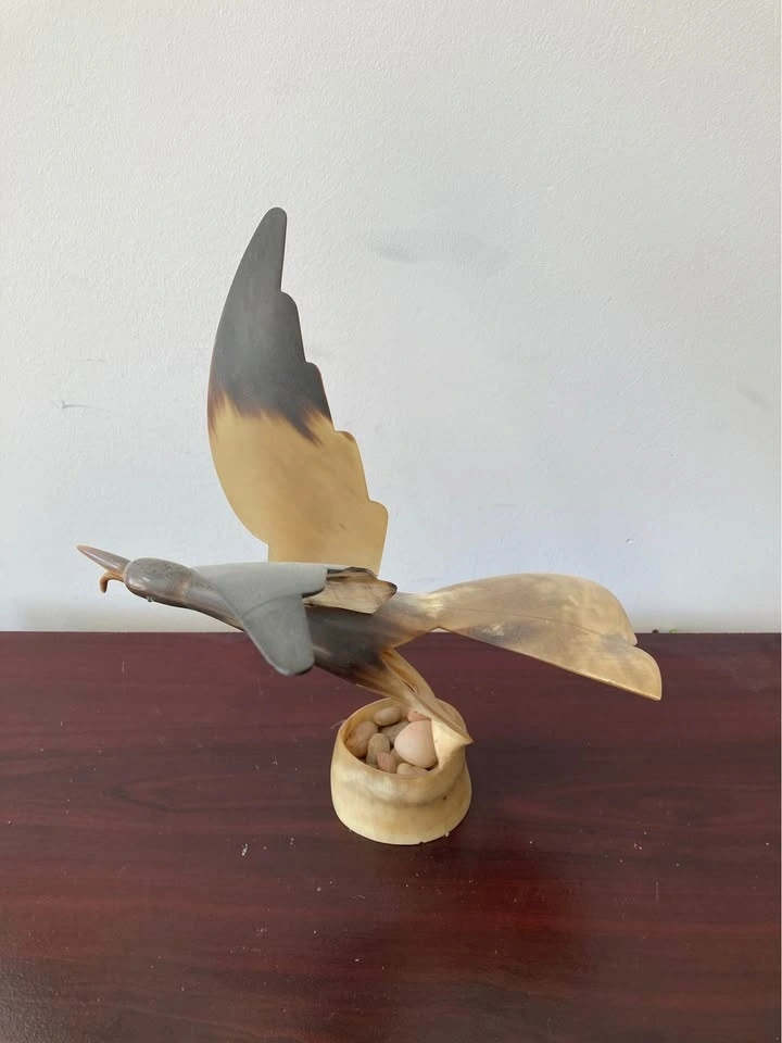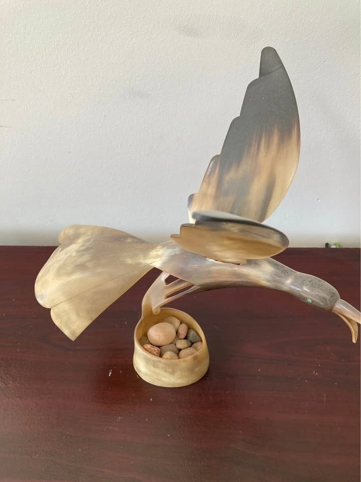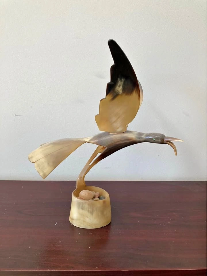 🕊️ Hand-Carved Horn / Stone Bird Sculpture – Mid-Century Style (