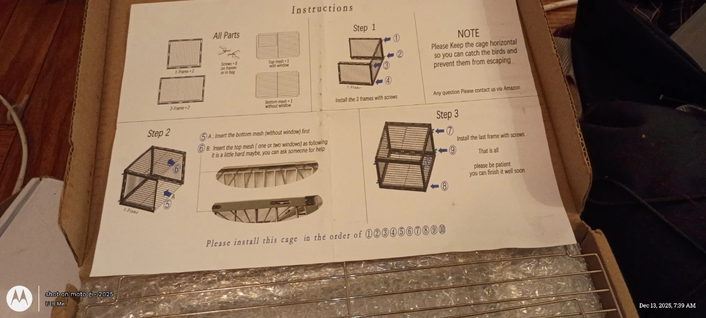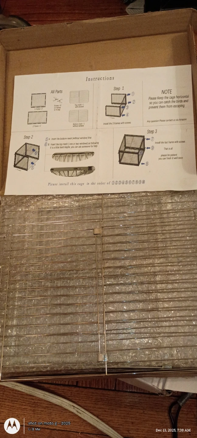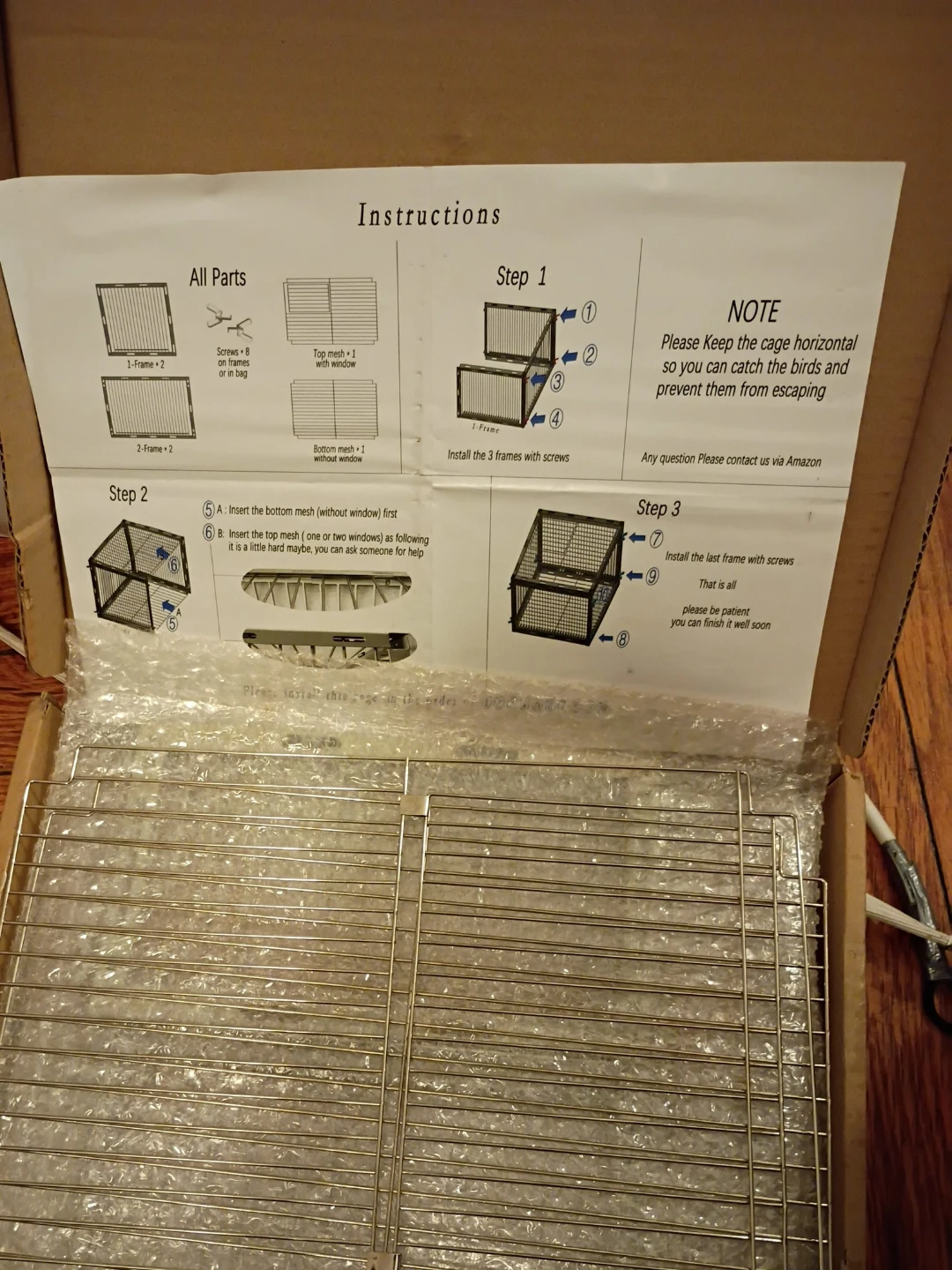 Selling a brand new bird cage that's super easy to assemble! The instructions are included, and the cage comes with all the necessary parts: frames, screws, and mesh panels. Please note that this is a cage that needs to be assembled.