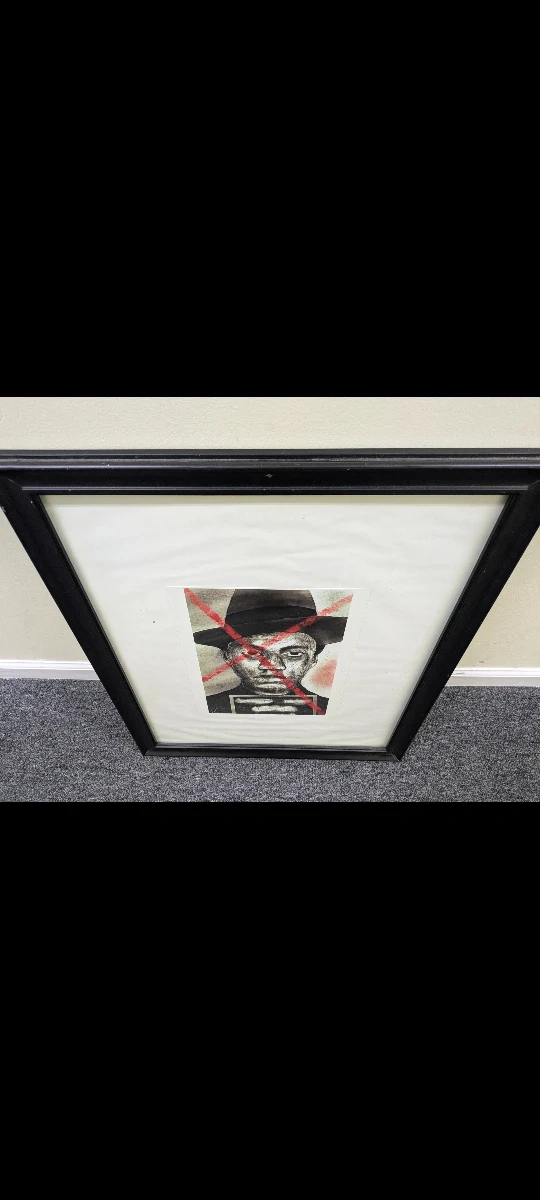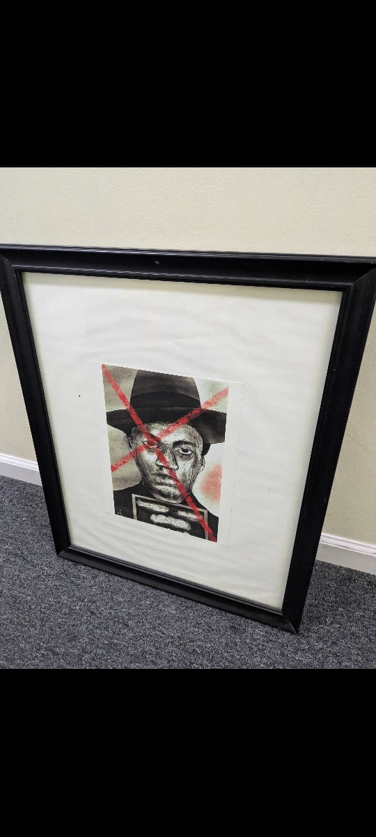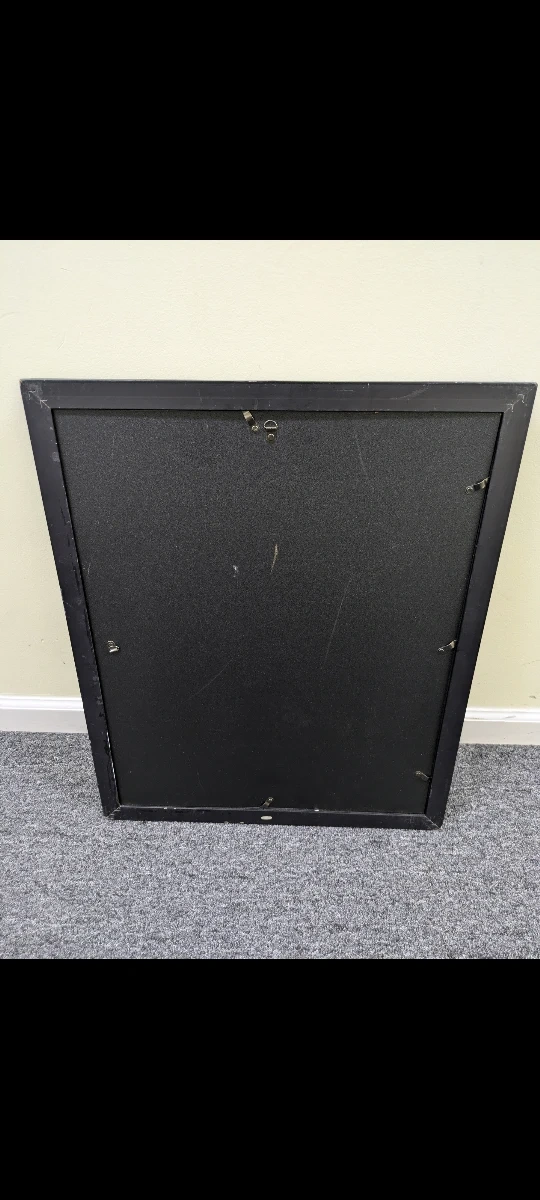 The artwork is in excellent condition. It was not created by me. The images show the details of the artwork. It is on paper. The last picture shows the back for hanging. The frame is wooden