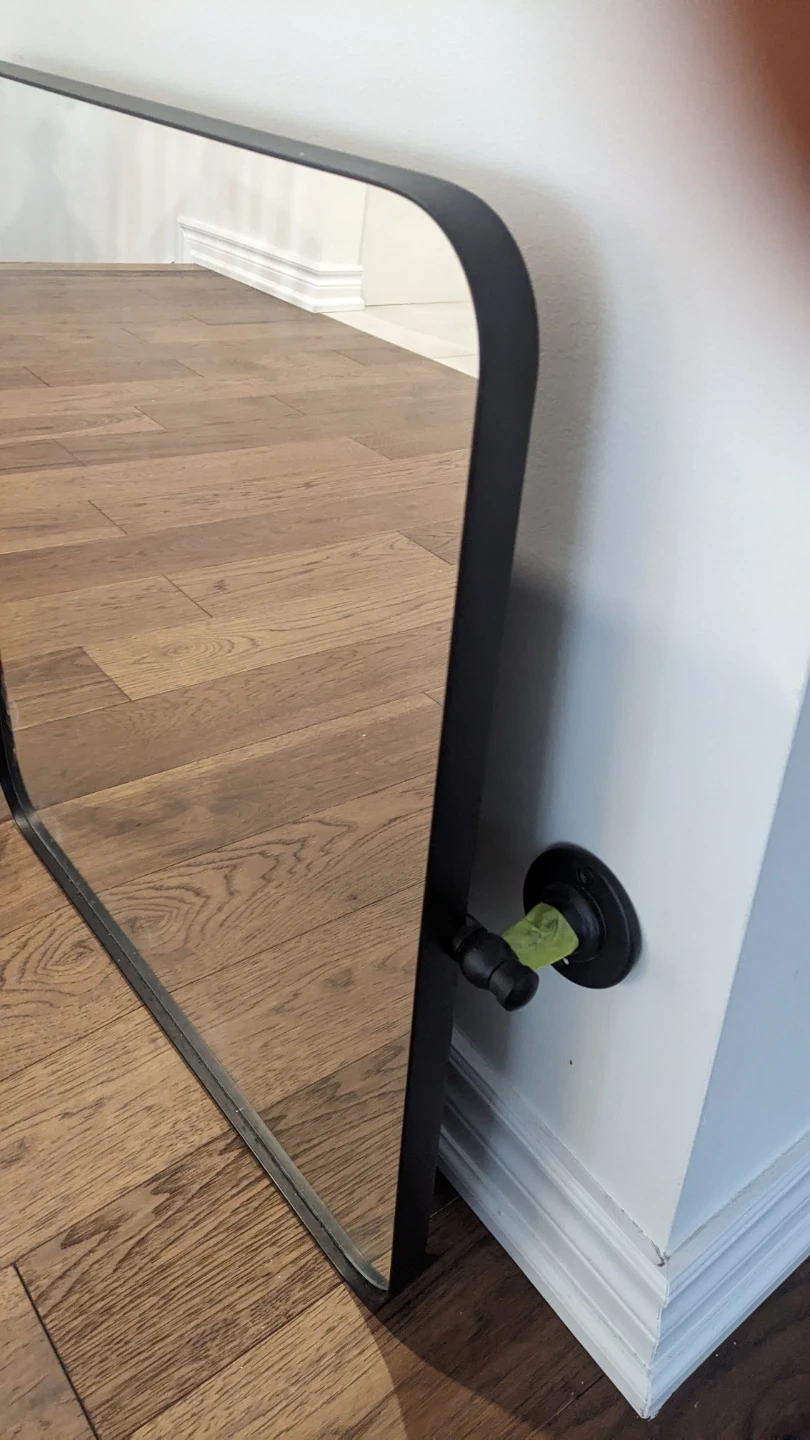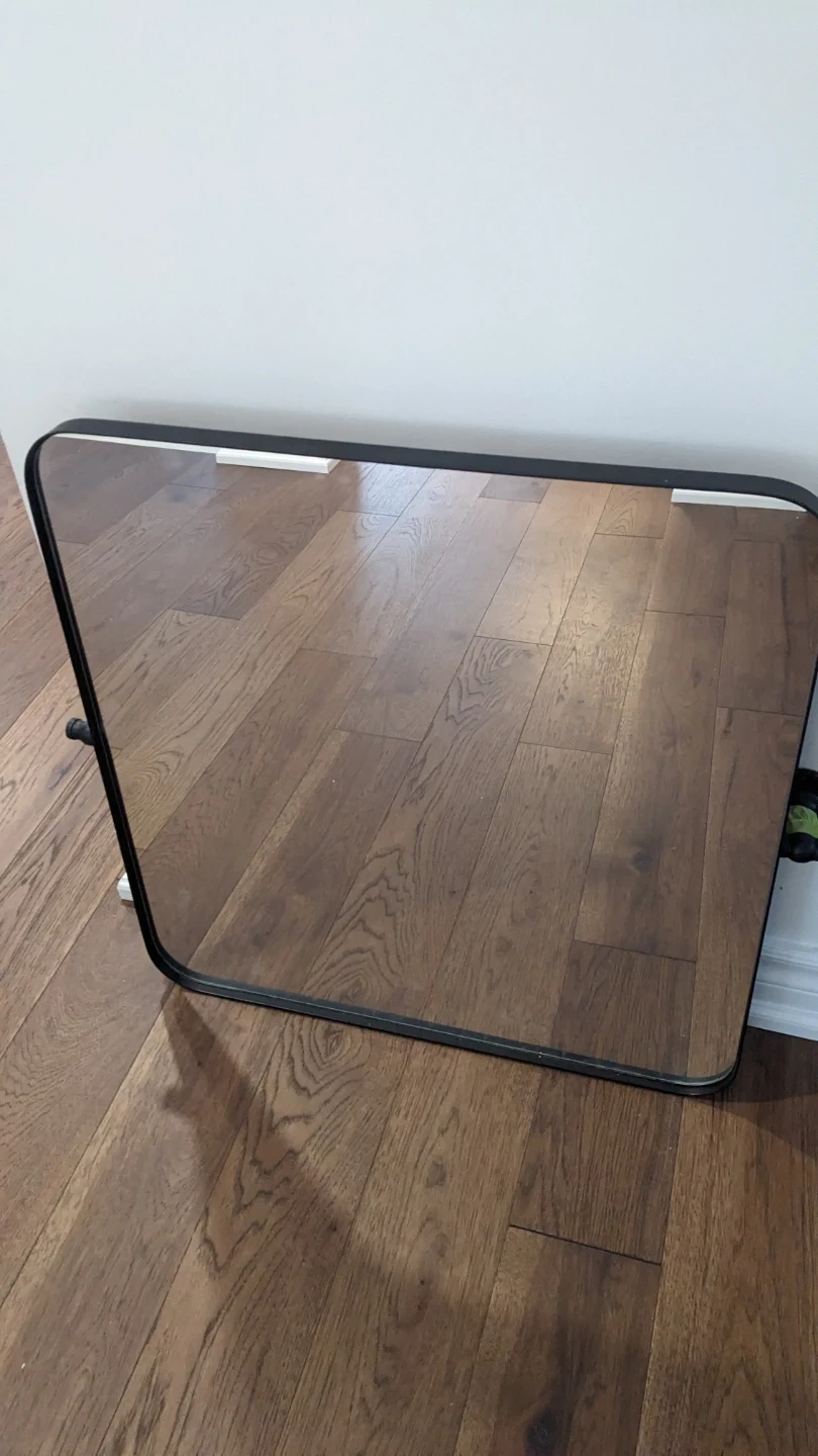 Selling a rectangular mirror with a sleek black frame. It's in great condition and would look great in any room of your house. The mirror has a clean, modern look that can fit any decor!